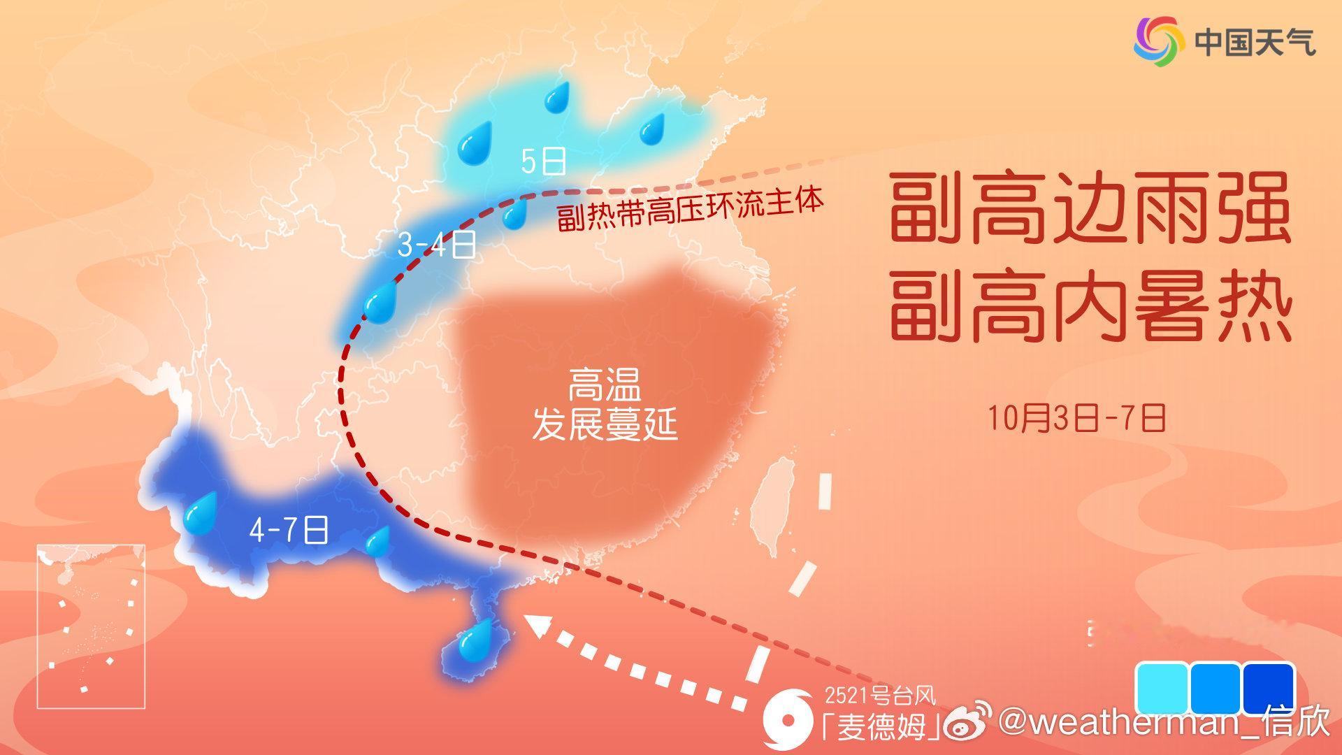 【秋雨 秋老虎 秋台风】未来副热带高压持续偏强,副高北侧的秋雨,副高内部的秋老虎,副高南侧的秋台风,均非同一般。