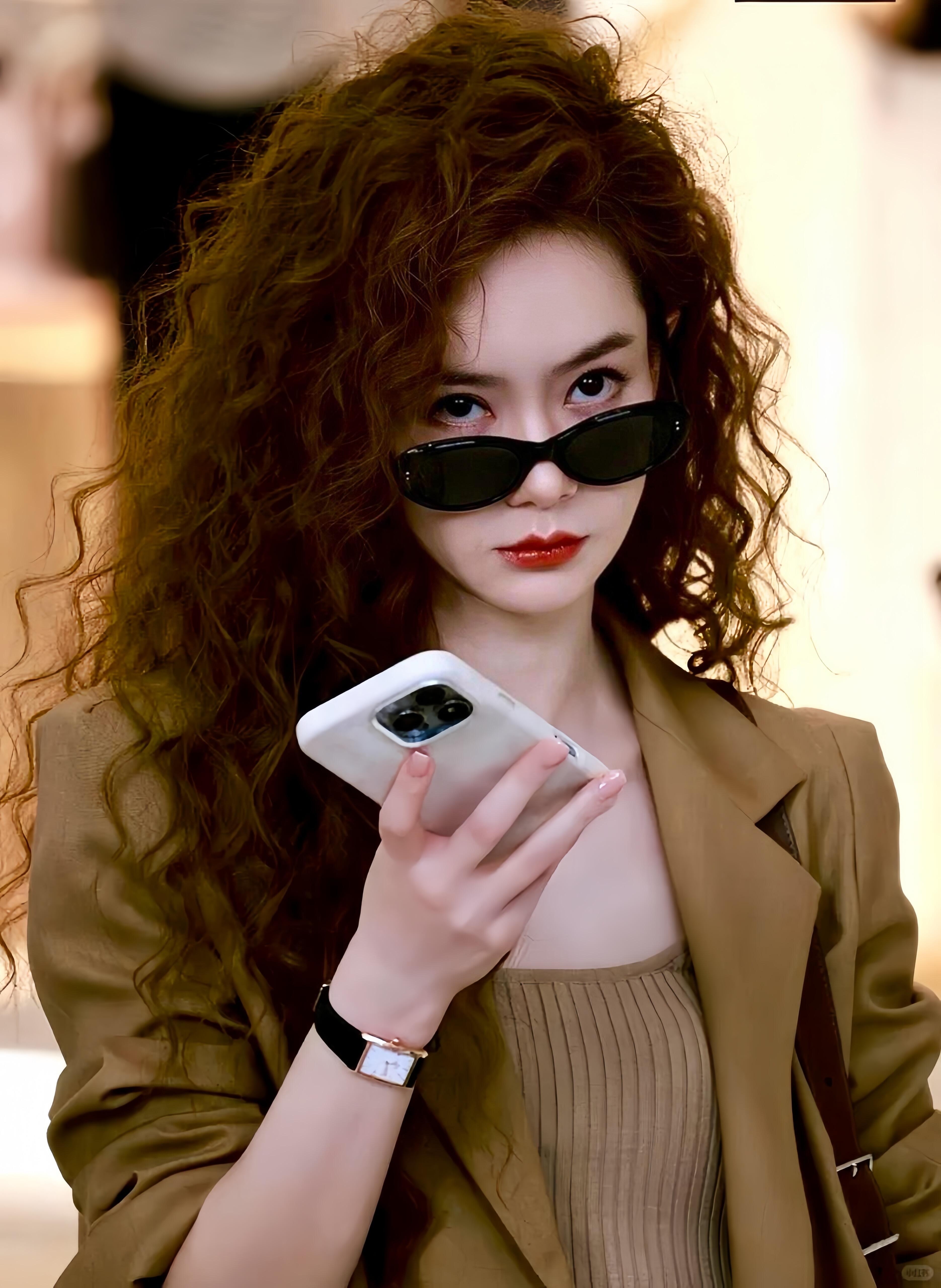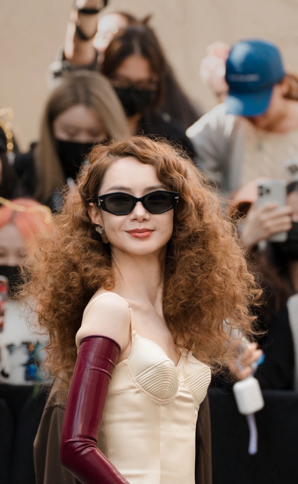 戚薇之前卷发拽姐造型比较出圈,所以这次时装周又弄了一样的,但是没之前蓬松!