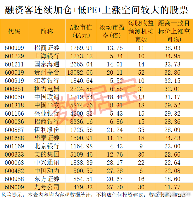 A股 融资客加仓的低市盈率,且上涨空间较大的概念股名单
