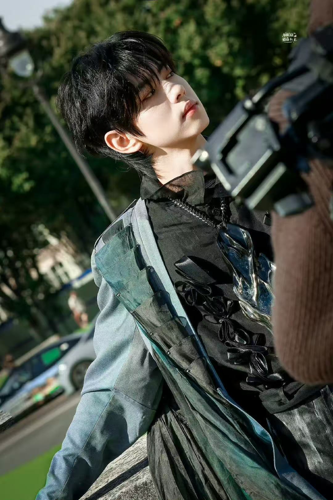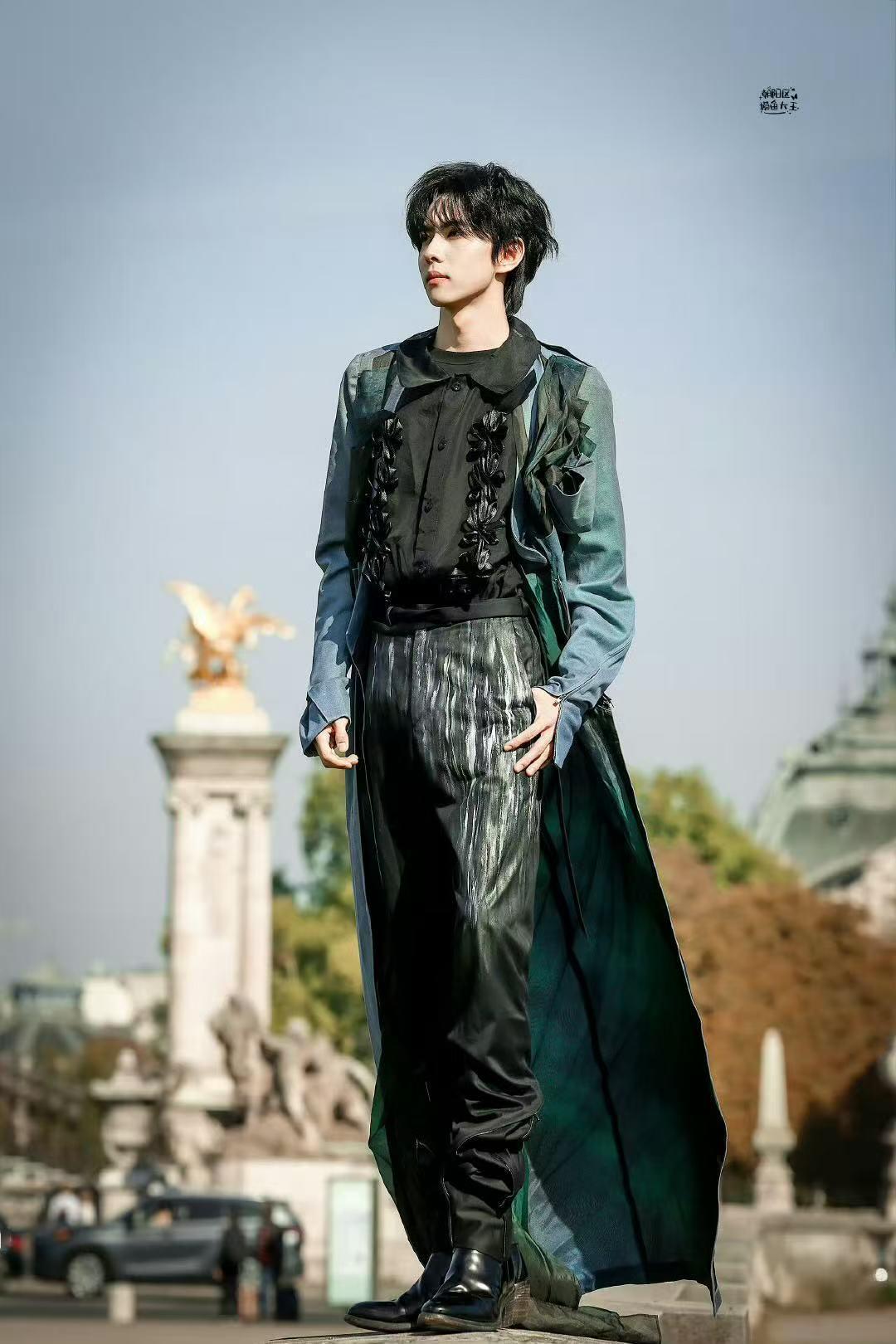 刘轩丞巴黎外拍绿色外套造型 孔雀王子出场~刘轩丞这个绿色外套太有那味儿了!