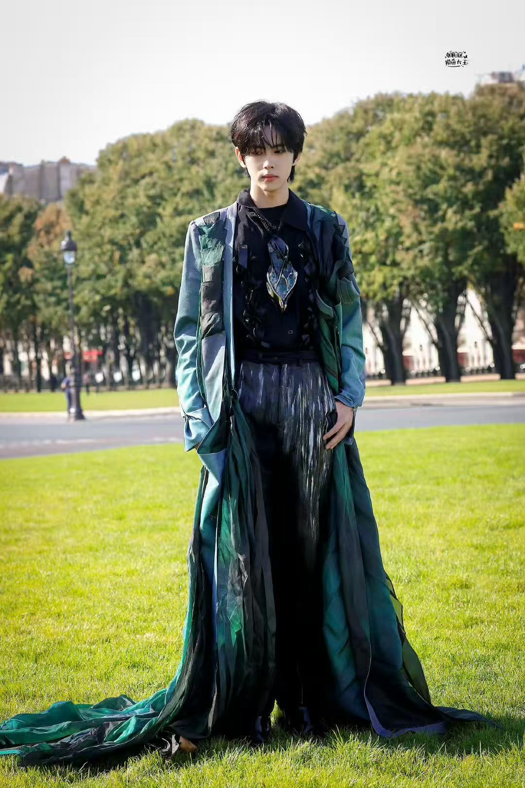 刘轩丞巴黎外拍绿色外套造型孔雀王子出场~刘轩丞这个绿色外套太有那味儿了!