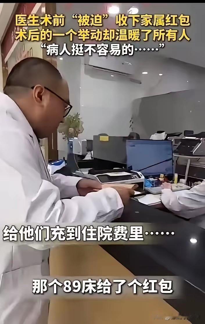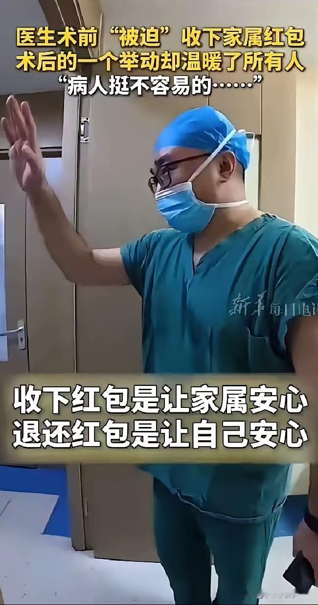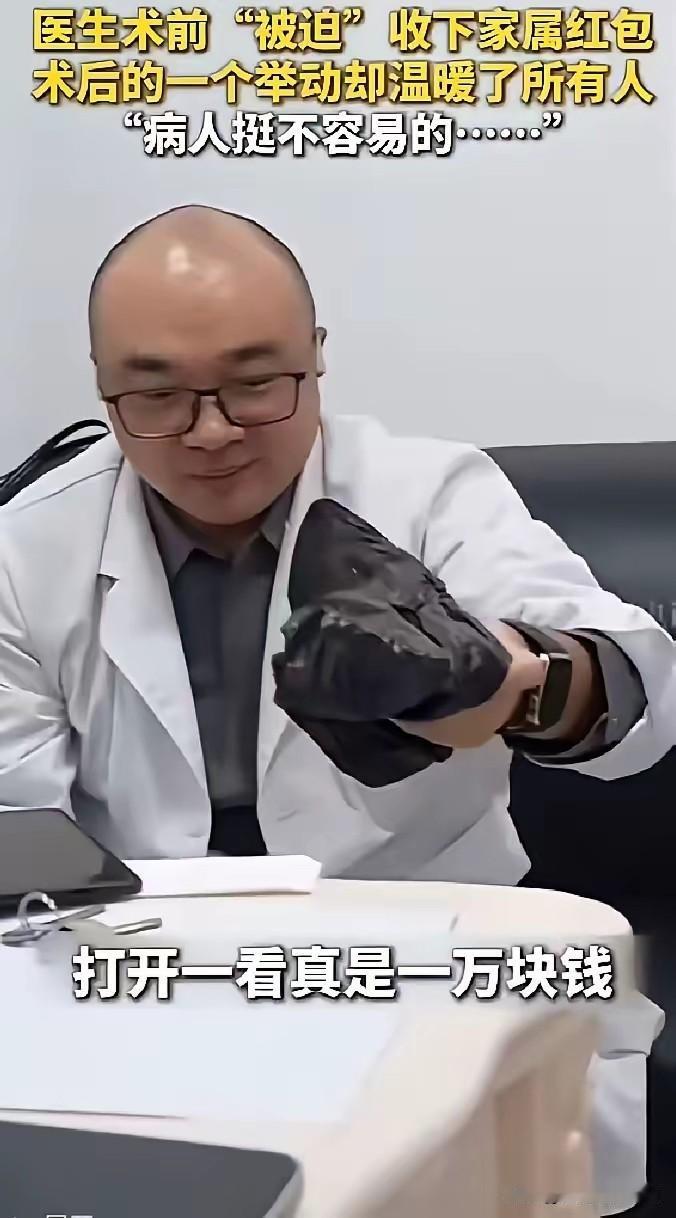 活该这位医生火了。 你瞧,北京这家医院的骨科医生,碰上患者家属术前送万元红包。他心里明白患者的担忧,没当场拒绝,而是先收下。 等患者一走,立马拿红包去住院处充了费用,还细心要了收据。为啥不马上给家属呢? 他呀,就是想让家属安心手术。这不,第二天手术顺顺利利,几天后患者要出院,医生才把收据给家属,解释清楚。 家属能不感动吗?这位医生,既照顾了患者的心情,又坚守了自己的医德底线。 在如今的社会,这样的好医生实在难得。咱就得多宣传宣传,让更多人看到这份高尚。 大家身边有没有这样暖心的好医生呢?快来说说。