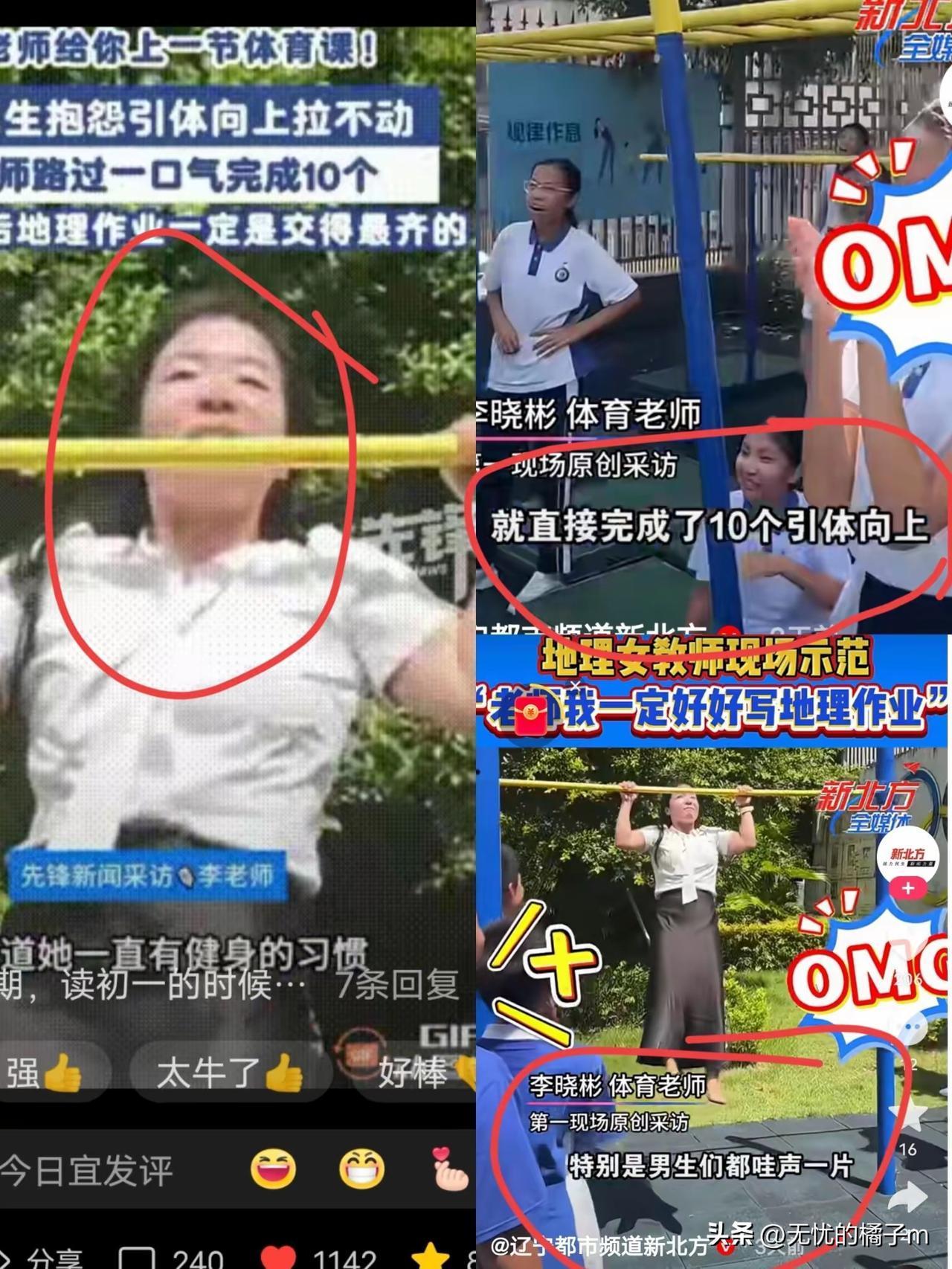 在广东深圳,一班学生正在上体育课 他们一边做一边抱怨:“哎,老师,这个引体向上太难了,太累了!” 这时候恰好有一位老师路过,听到他们的抱怨,于是停下了脚步,说道:“引体向上怎么会难呢? 很简单啊,我来给你们示范一下,”说完,这位老师就轻松做了十个引体向上,丝毫不费力气 瞬间引起了学生们的惊叹:“哇,做得好快啊!一点都看不出来累的样子!”这真是一位文静的老师,原来还有这么强健的体魄啊! 要是她不示范一下,学生们还不知道什么叫做“实践出真知”呢! 还有一句更贴切的就是“身教胜于言教”啊