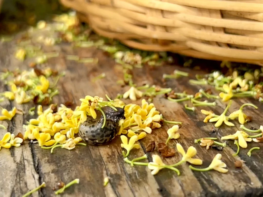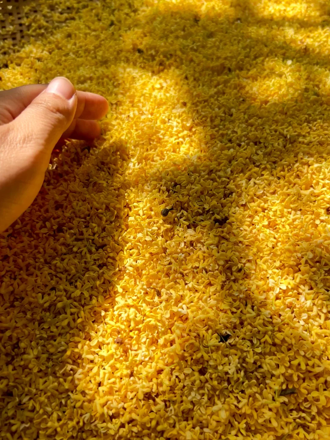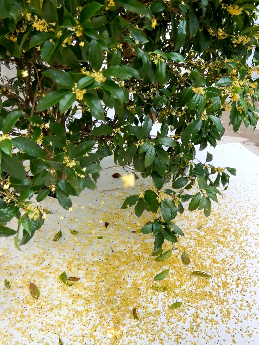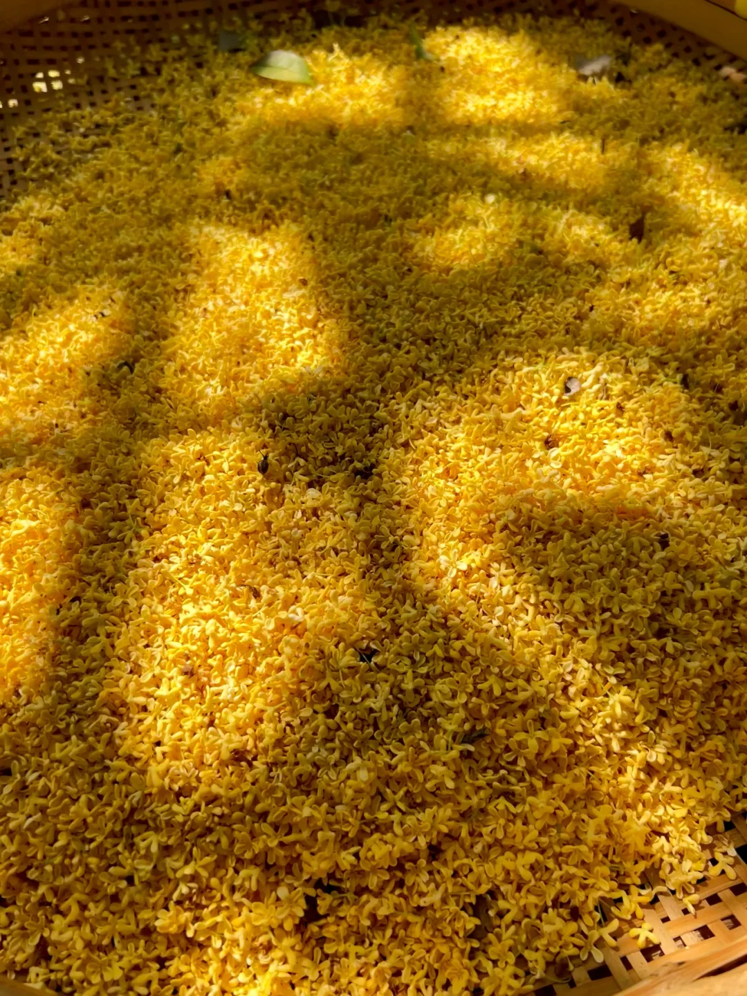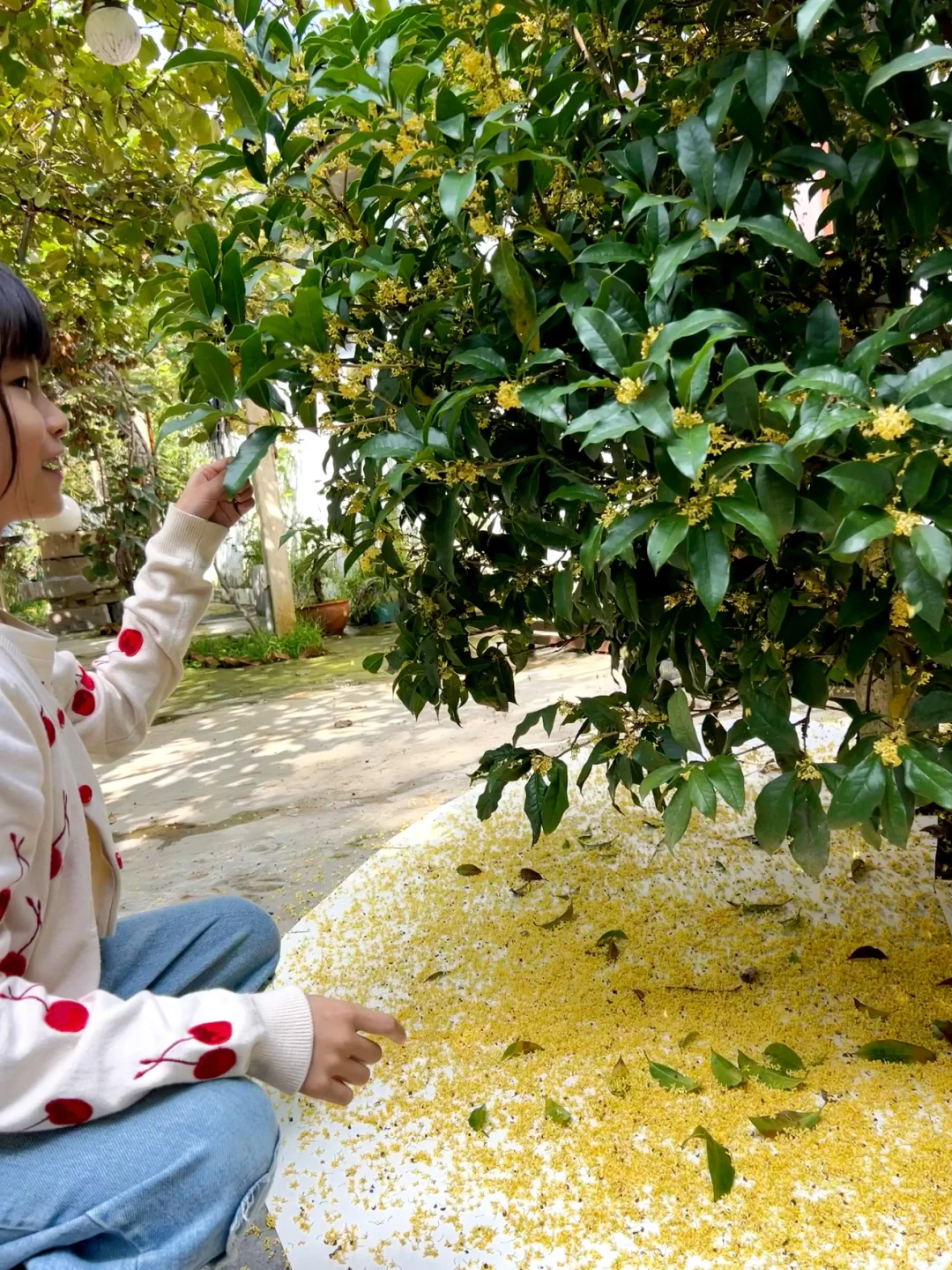 结果今天一出太阳,他还是迫不及待和孩子一起收起了花,然后烘烤储存干桂花…一段忙活…