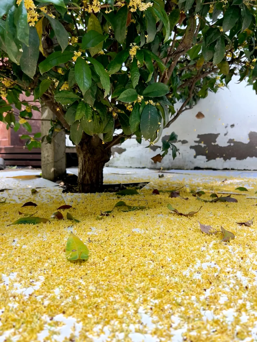 院子里有一颗桂花树,是改造院子之前就在的,不知道多少年了,春天爸说好像打从他记事时就有。我们回村生活5年多,它好像也从一开始的没注意到,到每年无论是花量还是香气,都深刻的成为了我们关于秋天的记忆…