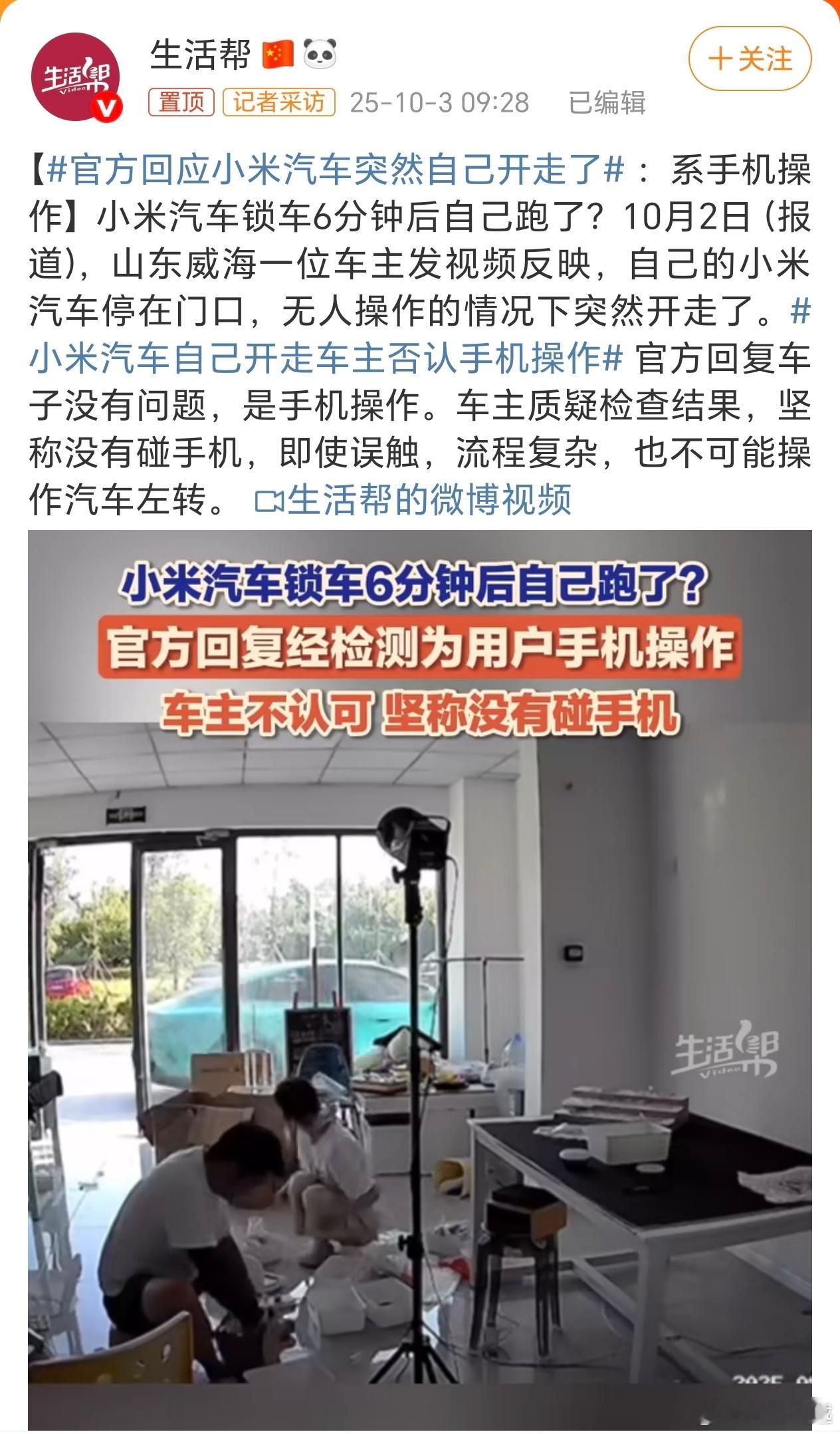 小米汽车突然自己开走这个事情,被一些人操作冲了两波热搜之后,小米官方终于回应了[