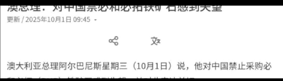 别光看澳总理急着喊“失望”,中国停购美元计价的必和必拓铁矿石,根本不是跟澳大利亚