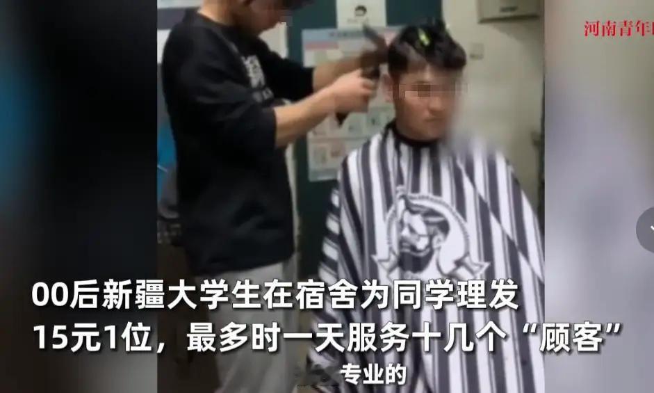 我总觉得, 这男生能成事。 一个00后新疆男生在宿舍开理发店,剪一次15块。由于手艺不错,又能听懂同学们想要什么发型,来找他的人从宿舍排到楼道。 他一天能剪十几个人,比外面理发店便宜一半。同学们觉得他剪得比店里好,还不用跑远路。这种小生意看着简单,其实需要眼光。学生们的钱不多,但花在需要的地方都舍得。他既帮同学解决了问题,又赚了生活费。 现在很多人抱怨赚钱难,可机会就在身边。能发现需求,又能踏实做事,这样的人走到哪都吃香。