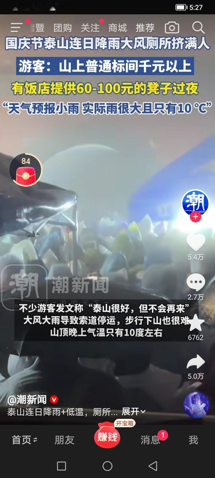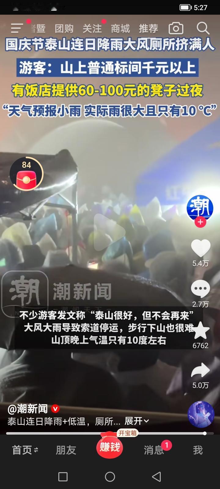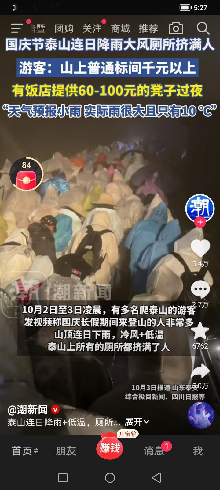 每年总有那么一些不信邪的游客,国庆期间,跑到人多的地方去,到了又后悔。就像这几天的泰山,泰山出现了多雨气温低的情况,山顶单间价格也相对较高,这在一定程度上影响了游客的体验感,有的游客都说再也不来了。 10月1日傍晚到2日白天泰山阴有中雨,5日到6日阴有小到中雨,1日夜间8点起,降雨伴随大风天气来袭,山上气温较低。由于天气原因,山上可以躲雨的地方不多,厕所都挤满了人,景区工作人员虽开放了碧霞祠等室内场所,但空间有限,无法容纳太多游客。 同时,泰山山顶酒店价格普遍较高,普通标间都在千元以上,且大部分都订满了。不少宾馆和饭店提供了座椅供游客过夜,但需缴纳每人60元到100元的过夜费。此外,国庆假期泰山景区游客爆满,红门登山口排队长达2公里,游客需耗时3小时才能进入检票口,山顶道路狭窄,人群密集,下山时同样艰难,排队时间长达3小时,厕所也需要排队,这些都对游客体验产生了不利影响。 还是像我这种又懒又没钱的人好,天天在家刷手机,刷累了就睡,国庆期间旅游就是花几倍的钱体验1/10的乐趣。(信息图片来源:潮新闻)国庆 国庆旅游 初次泰山旅游 泰山泰山旅游 泰山绝美打卡地 泰山名胜景区 泰山上都是人