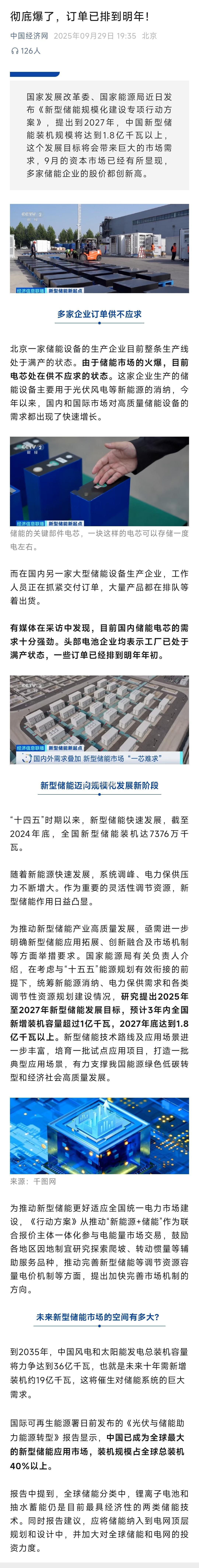 新型储能市场彻底爆了,订单已排到明年,多家企业股价大涨…[中国赞][中国赞][中国赞]