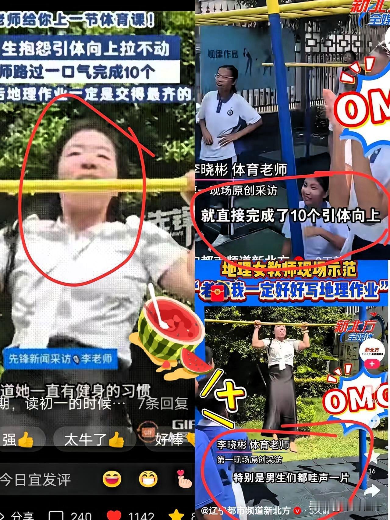 这下瞒不住了,不仅学生知道了, 老师家长都知道了! 广东深圳。一班学生在上体育课。体育老师教学生们练做引体向上。可学生们都说这太难了,一位地理老师正好路过,直接上手。网友说,人不可貌相,文静的地理老师有这体魄! 深圳光明区百花实验学校的操场突然安静了。八年级男生们围着单杠发愁,有人憋红脸也拉不起身子。体育老师李晓彬正头疼中考体育项目,看见地理老师余潇抱着教案经过。 李晓彬喊住余潇让她示范。这个1.6米高的女老师放下教案,踮脚握杠。十个标准引体向上一气呵成,操场的惊呼声差点掀翻天空。 余潇落地时表情轻松。有个男生激动大喊:"老师,我以后一定认真写地理作业!" 孩子们突然发现,教科书里的等高线和大陆板块,原来藏在老师紧实的背肌里。 这位地理老师每周健身两三次,坚持了七八个月。从弹力带辅助到标准引体向上,她的训练笔记比地理教案还详细。 男生们抢着再次尝试单杠。女生们也围过来问发力技巧。体育老师李晓彬看着突然沸腾的操场,心里乐开了花。 隔壁班班主任后来发现,那天地理作业交得出奇整齐。余潇在课堂讲解背肌群时,台下眼睛亮得像星星。 龙岗区某家长群里炸锅了。"文弱书生"的旧标签被撕得粉碎。现在孩子回家就做俯卧撑,说不能给老师丢脸。 广州体能教练阿杰在直播间分析:女性引体向上难度确实更高,但余老师动作堪比专业运动员。这话让视频播放量破了五百万。 华东师大体育系教授翻出数据:全国中小学女生引体向上合格率不足15%。而余潇的十个引体向上,比任何口号都更有说服力。 深圳教育局官微转发了视频。配文写道:教育不止在黑板,更在身体力行的每个瞬间。三小时内点赞破十万。 余潇的健身教练偷偷爆料:她训练时总念叨"地理老师不能只会画地图"。这股劲头,现在全校学生都见识到了。 年级主任发现课间操单杠前总排长队。有女生悄悄说:"原来力量感这么酷。" 体育组趁热打铁,增设了女生体能特训班。 教育专家评价这是"最昂贵的公共课"。学校没花半分钱,只用老师的真本事,就点燃了全社会的讨论。 那根普通的单杠现在成了校园圣地。总有学生去摸一摸,仿佛这样就能沾到老师的力量。 余潇照常带着地球仪穿梭教室。只是孩子们看她画季风环流时,总会偷偷看她手臂线条。这种无声的崇拜,比满分试卷更珍贵。 各位读者你们怎么看?欢迎在评论区讨论。