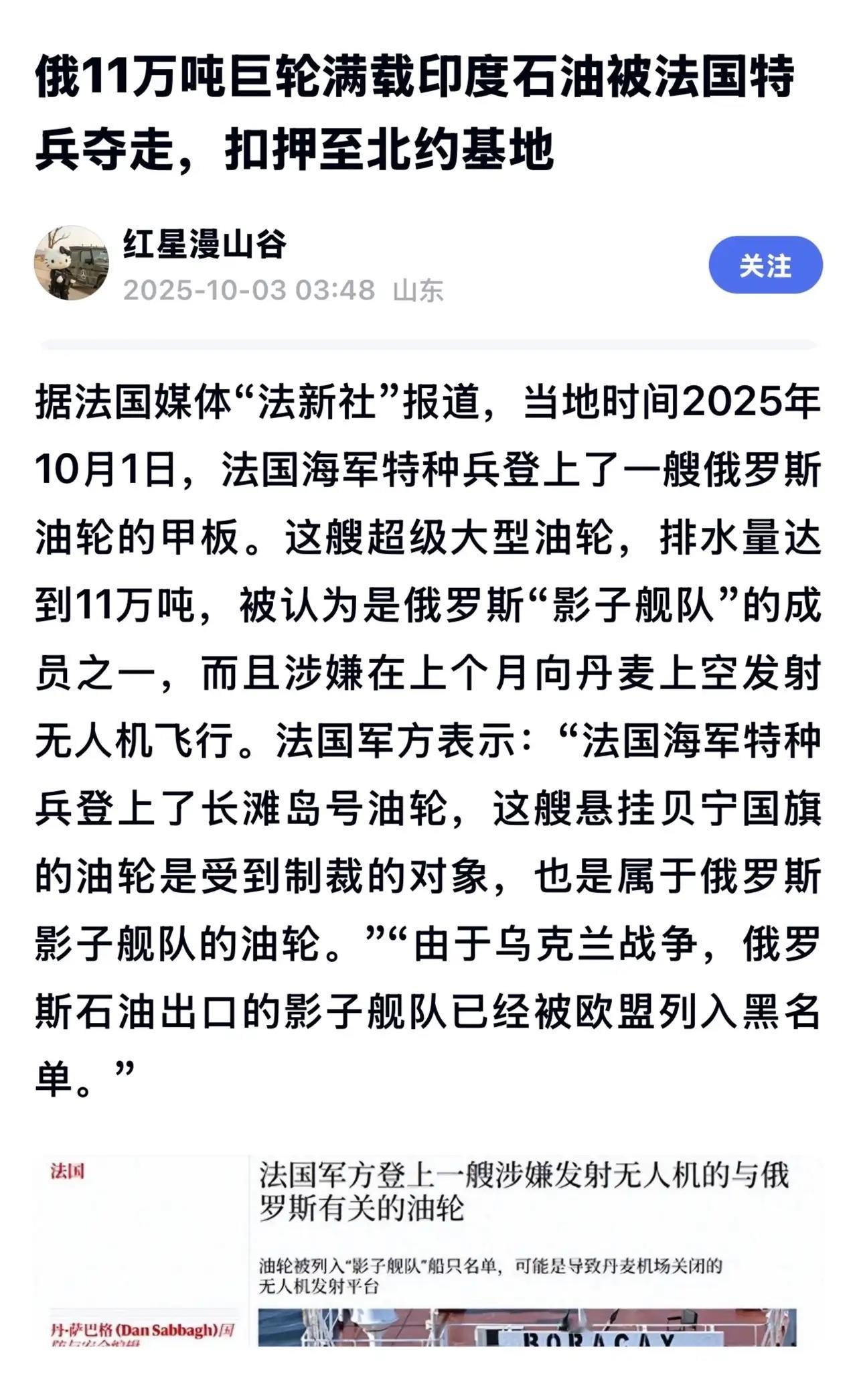 俄国防部向法国驻俄大使馆提出抗议 俄总检察院称法国政府是“海盗行为” 俄海军表示恢复冷战时期“全球巡航”
