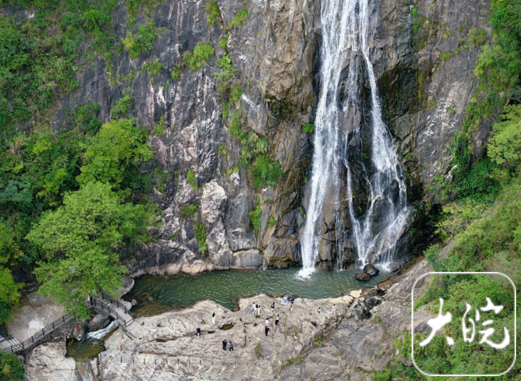 大皖新闻讯10月3日,位于潜山市的天柱大峡谷景区上空云雾缭绕,美不胜收。峡谷上下落差200多米,石崖陡、水湍急,大小瀑布跌落成群,大瀑布腾空飞落、气势恢宏;小瀑布蜿蜒曲折、婀娜多姿。