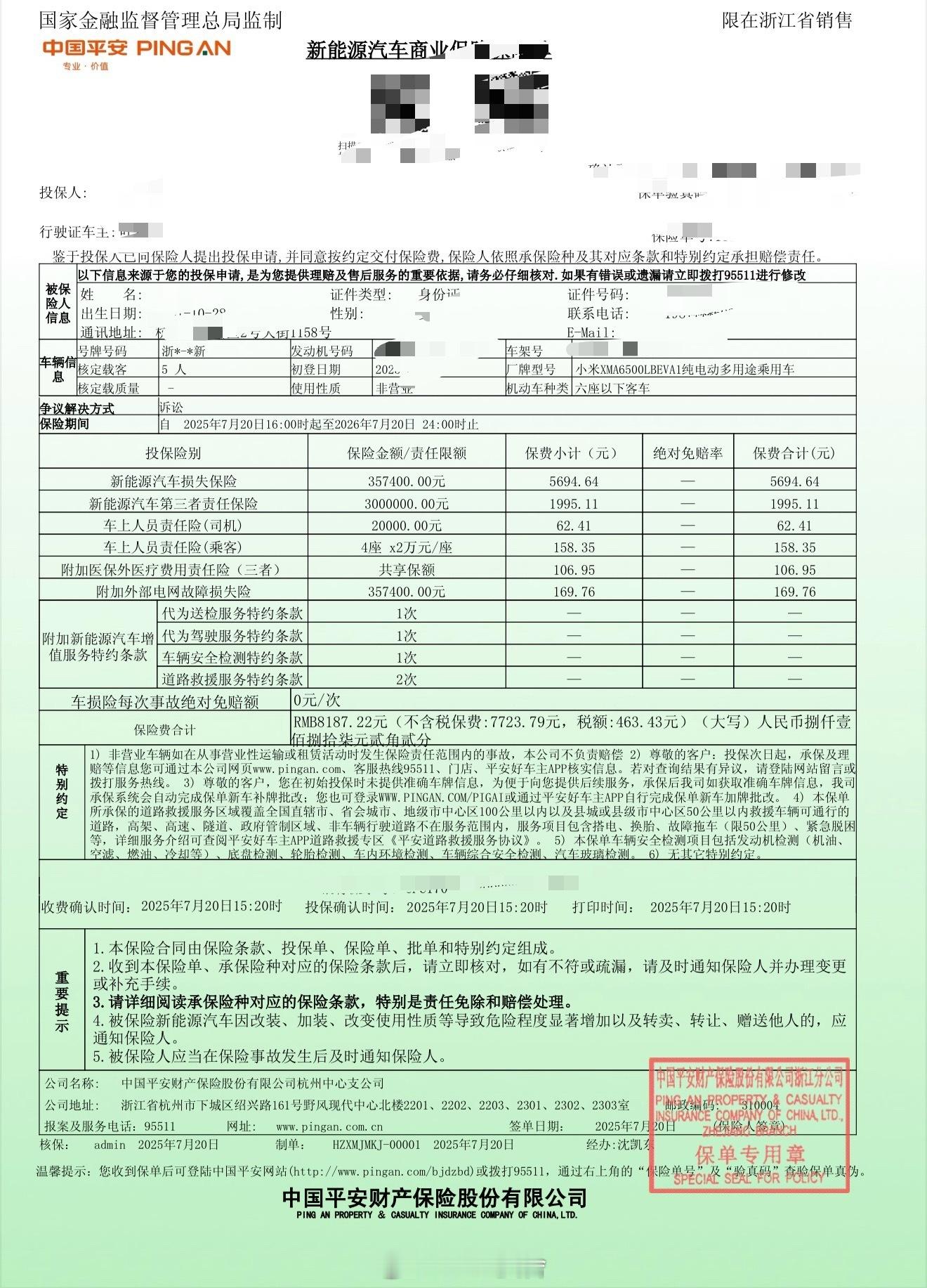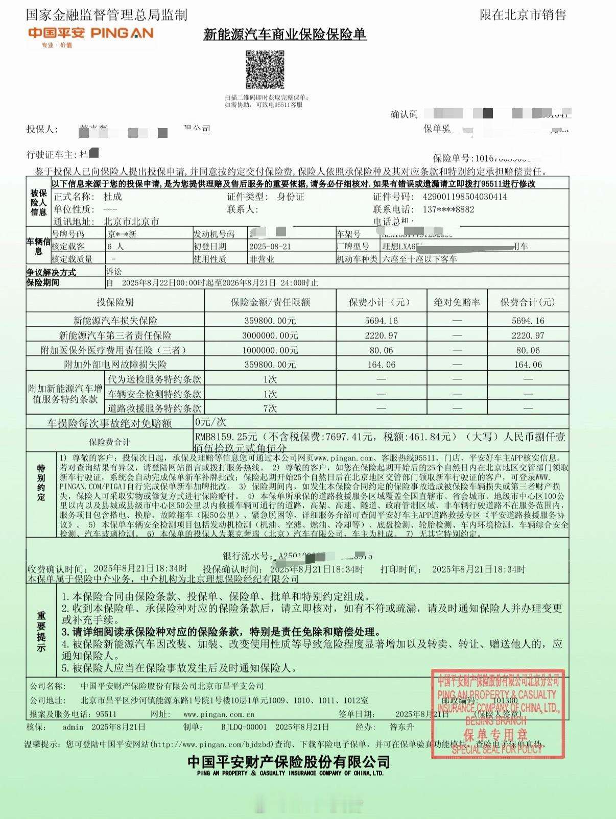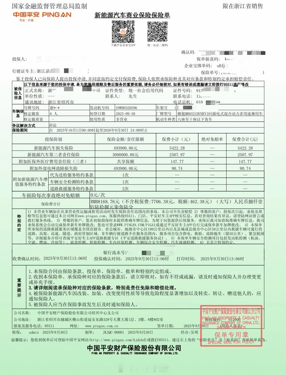 从保单看车损险,尊界最低,极克其次,问界、小米、理想一样。