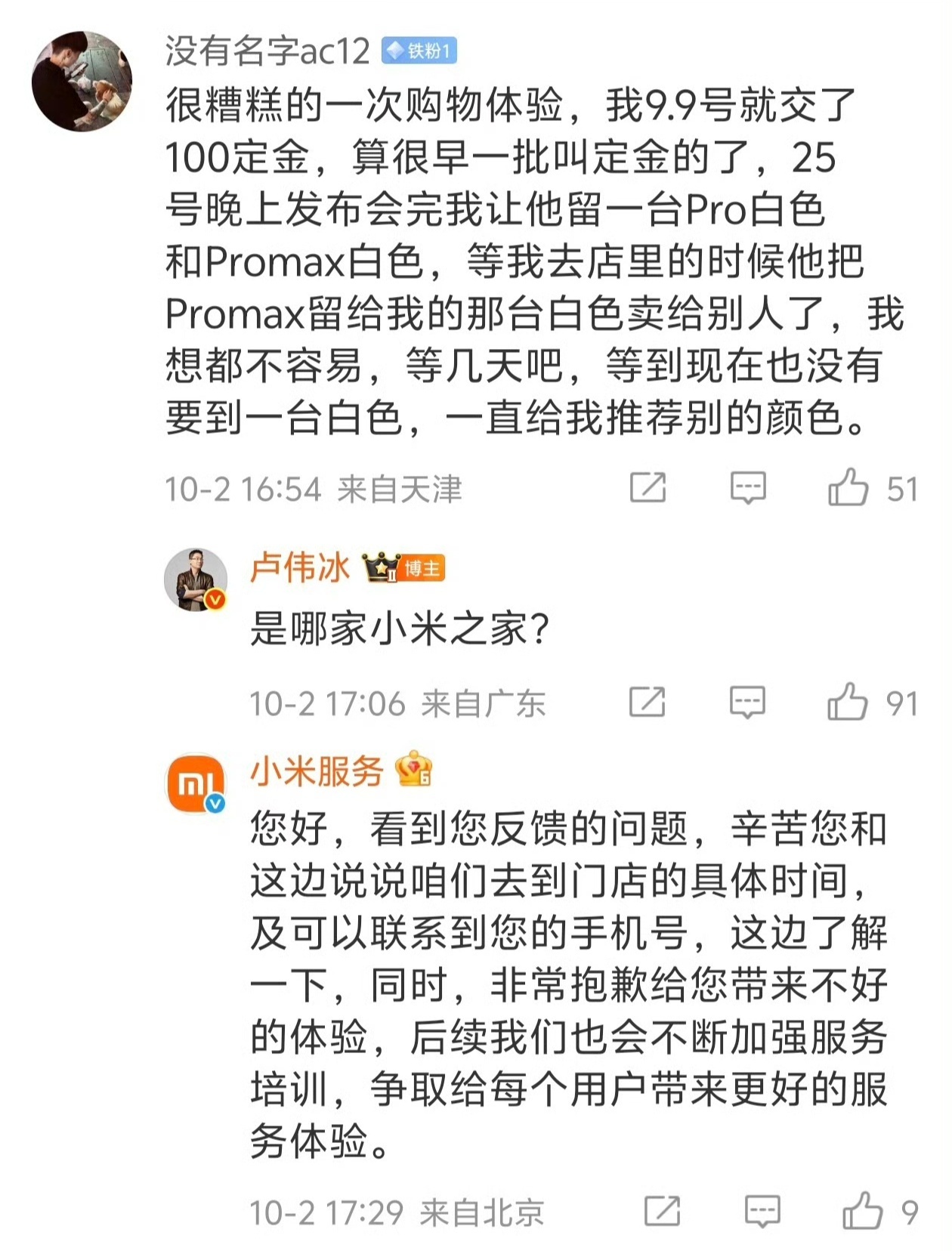 而且小米之家也是卢伟冰一直在抓的,天津这家估计要受到严厉处分了![怒]