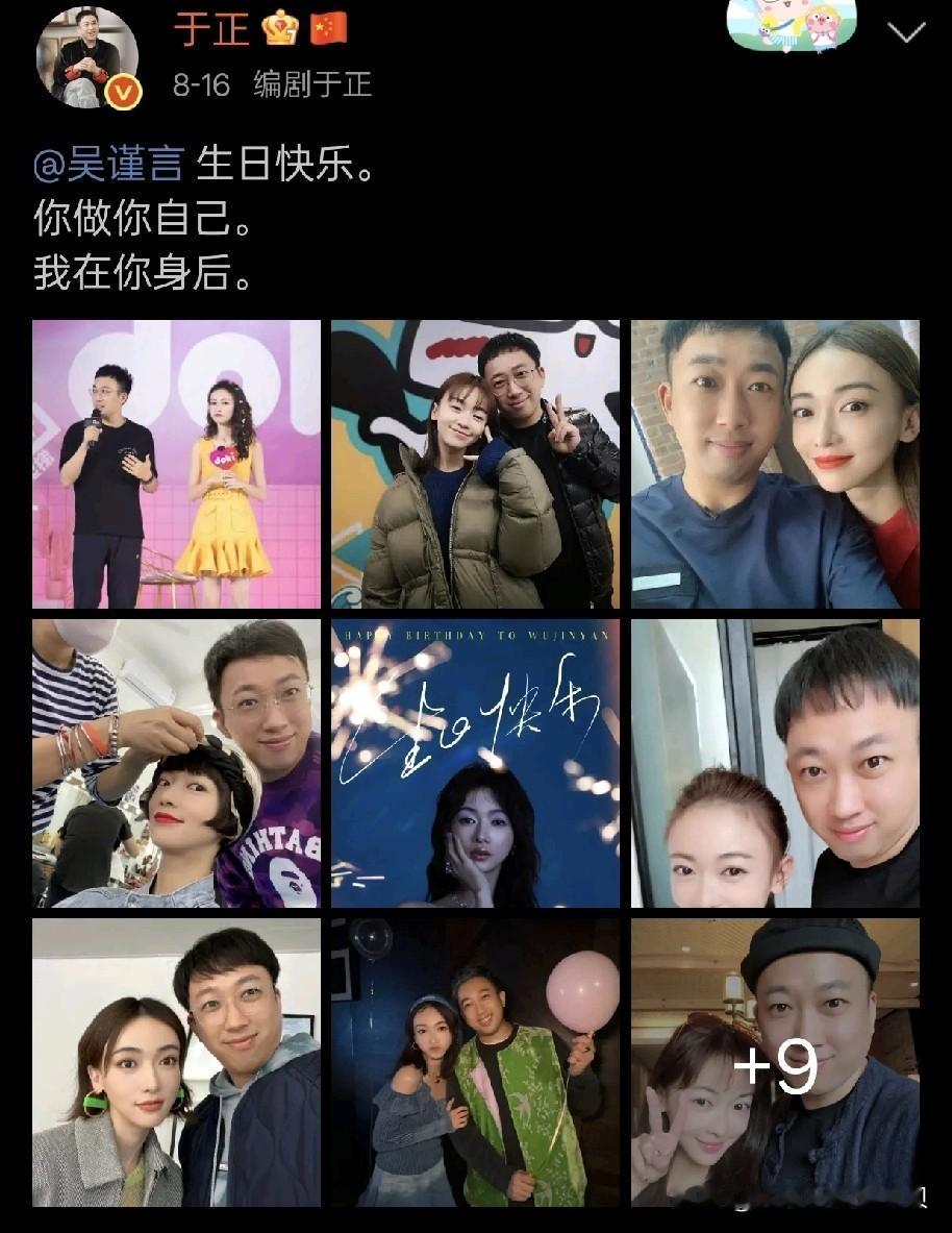 很多人说于正偏心吴谨言,但我感觉他对白鹿和吴谨言一样好! 无论是微博还是小红书,这两位过生日的时候,于正都是掐点送上生日祝福。 微博白鹿是视频,吴谨言是各种合照 🍠白鹿是角色合集照,吴谨言是视频 可以说是相当端水了! 公司过年发布的员工海报,这两位也都是在第一张出现,甚至白鹿的位置比吴谨言的还要好。 所以,那些说于正偏心吴谨言的人,明显是没有认真看于正的社交内容[呲牙]
