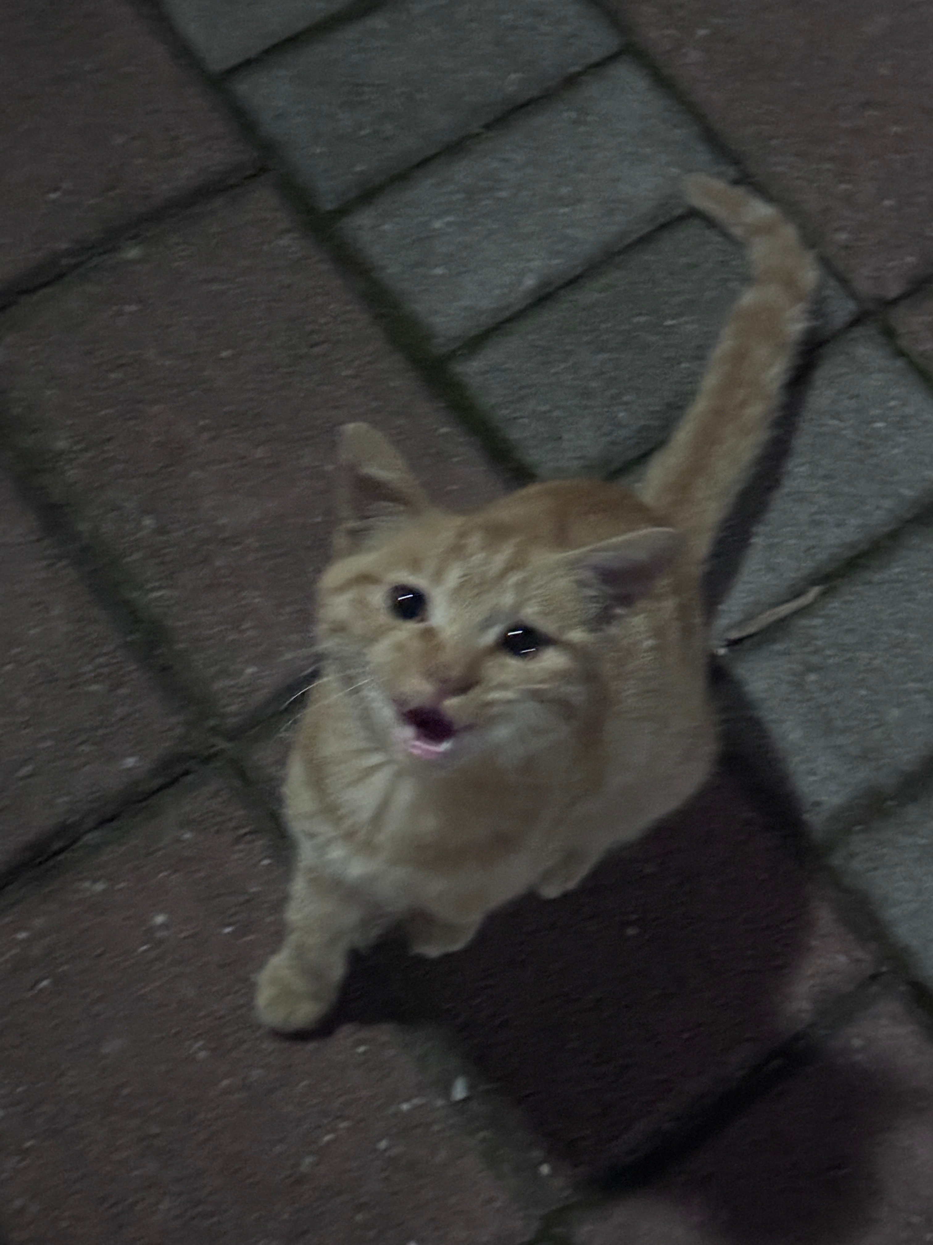 又碰到一只惹人疼的小橘,一路跟着我,蹭我,还冲我喵喵叫,整得我挺难受的。