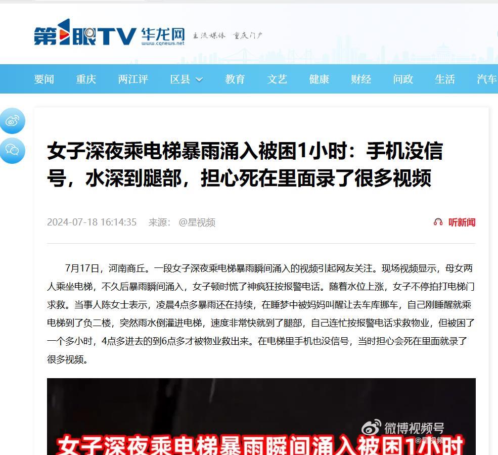 [撒花]太吓人了!河南商丘,女子半夜得知车库被淹,乘电梯下楼挪车!谁知到了负2层