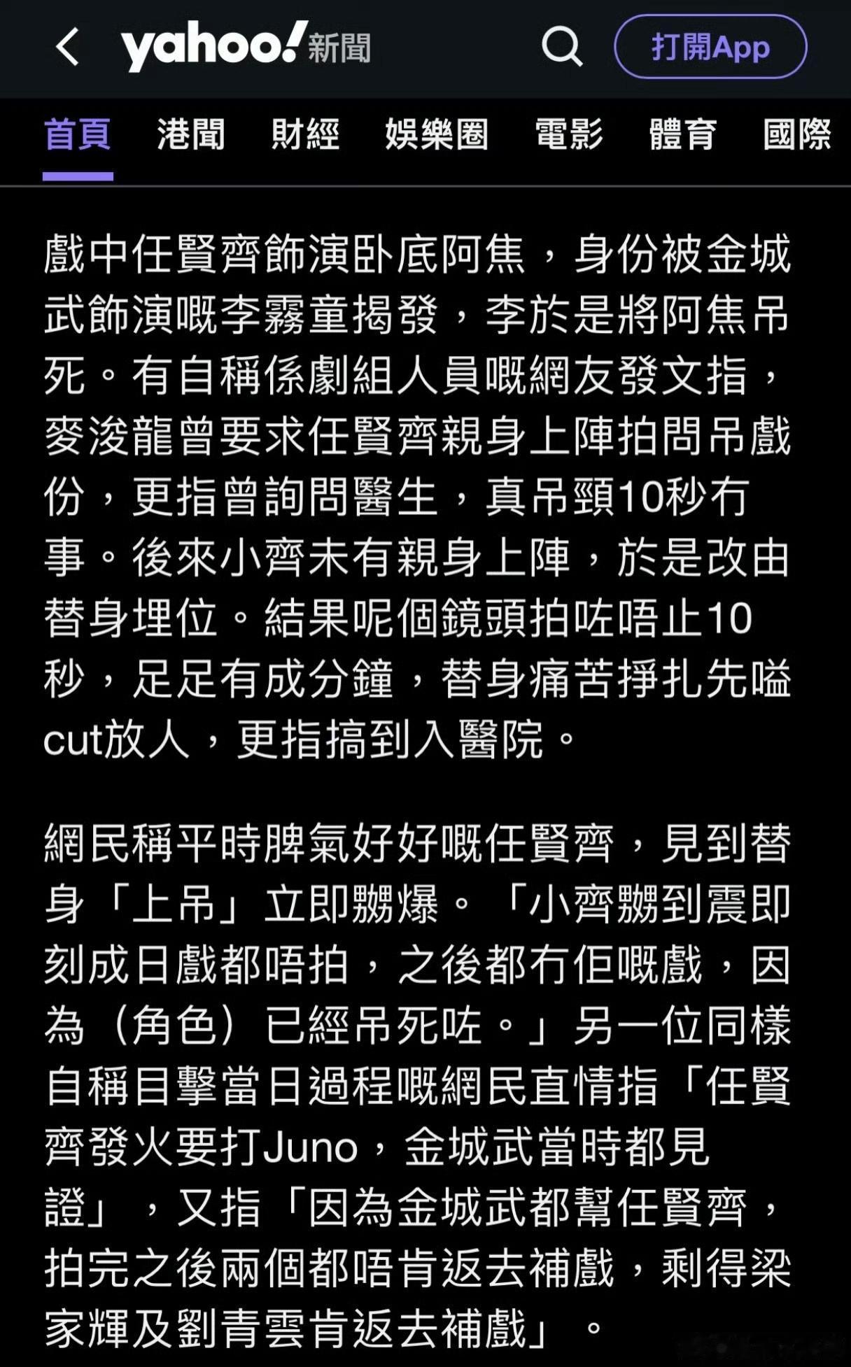 《风林火山》的争议比剧情还乱? 《风林火山》这瓜也太让人窒息了!网传任贤齐角色的绞刑戏,导演竟让替身真上吊,本应10秒拍完,却故意不喊cut,眼睁睁让替身吊了一分钟,最后直接紧急送医。 任贤齐气到拒拍补戏份,结果角色被大量删减,连海报都没影了。更绝的是武术指导熊欣欣直接开撕,骂导演“心理变态”,说这作品根本不值得期待。拍了八年、砸了四亿的片子,没等来口碑先等来丑闻,这样的“艺术追求”谁看得懂?