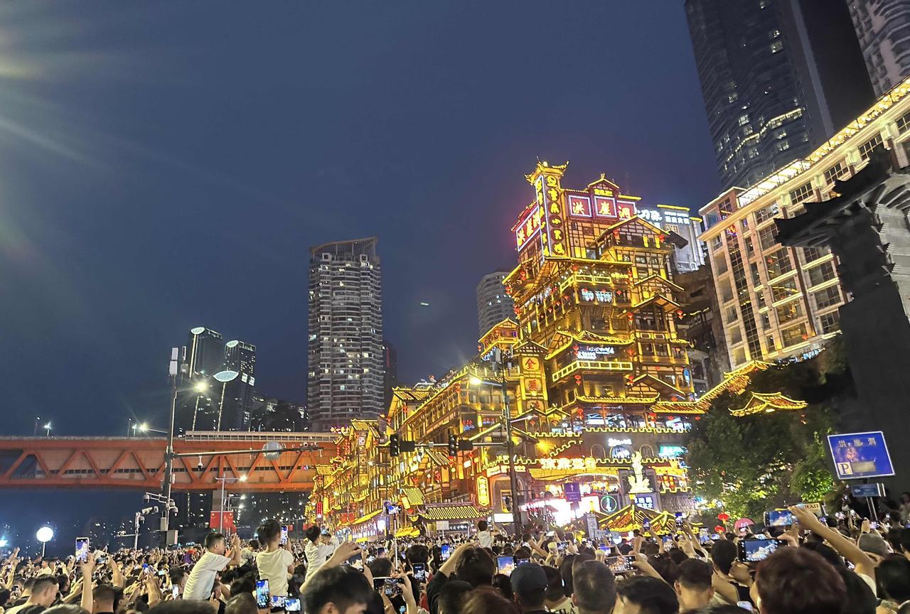 中国科技,世界第一!10月3日晚上7点,重庆洪崖洞亮灯时刻,超过十万人攻打洪崖洞,但是,网络信号很畅通,不少人在用手机直播,很多人在与家人朋友视频聊天或者即时分享照片和视频,这在今年五一期间都是不可能良好实现的! 为什么?因为重庆全面升级5GA技术! 哎!曾几何时,很多大网红都要一起花高价拼住在解放碑的酒店里,利用酒店的有线网络转岀来的WiFi信号,才能直播解放碑的跨年夜,才能及时上传现场照片和视频,如果是在解放碑的户外现场,手机完全无法接打电话,更不可能视频通话、上传视频、网络直播! 不得不说,今年国庆节,重庆主城热门景点的网络信号,有史以来最强最好!比今年五一假期强多了!比618挑战世界吉尼斯纪录之万架无人机灯光秀的那个挤爆南滨路的夜晚好多了! 中国,百折不挠始终坚持独立自主,终于即将成为世界第一强国!在今年8月9月的世界机器人大会、世界智博会、93大阅兵、世界工业博览会、摩博会等重大活动现场,展示了令人震撼的中国创新成果,前几天我乘坐了重庆制造的世界内河航运最大最先进最环保的豪华游轮——17000吨的美维凯璇号,深入全面感受到了中国制造的系统性优势!这艘船的通迅及制导系统全面国产化!这艘船堪称重庆造船界的“问界”! 2025年10月3日晚上,重庆洪崖洞人流量达到今年国庆节的巅峰,通讯系统完美通过了坚巨考验!让每一个在场的中国人及外国游客都能及时上网愉快分享喜悦,这真的不是一件容易的事情啊! #光线摄影世界曾兰谈天说地#