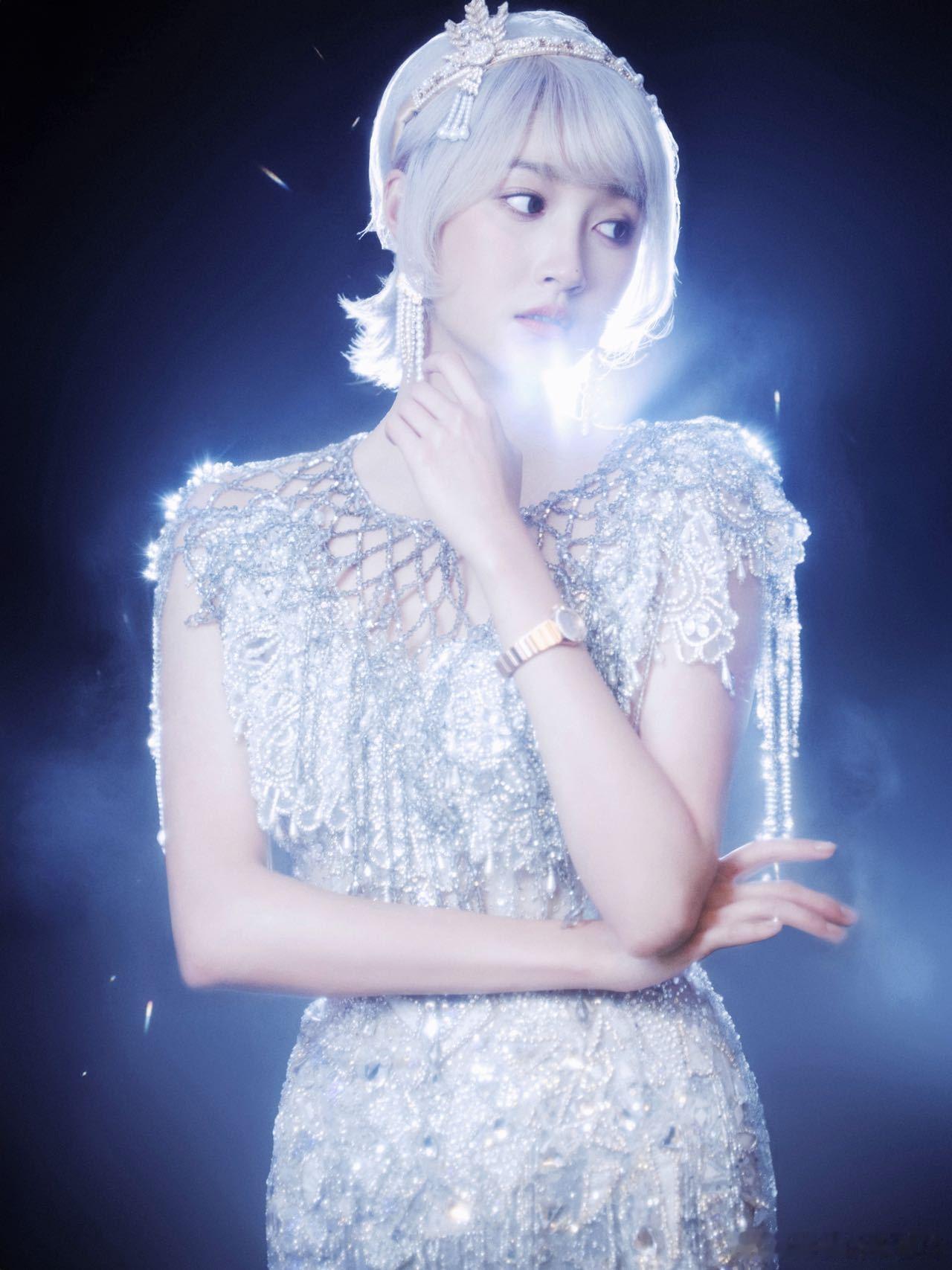 关晓彤银发钻石裙 银色造型优雅精致,红色造型明艳动人,百变晓机灵驾驭多种风格,关晓彤钻石裙身超亮眼!