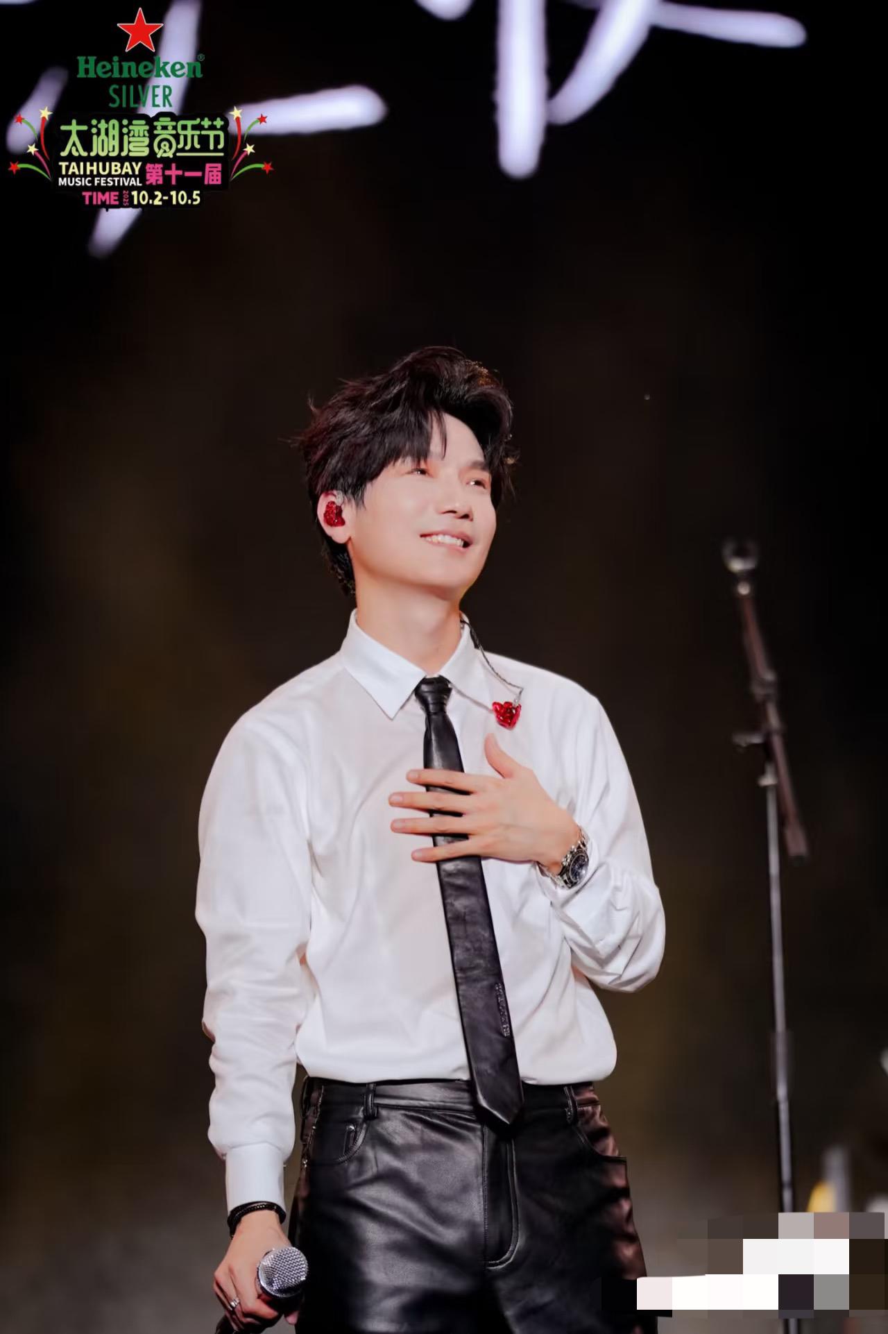 太湖湾音乐节陈楚生让歌迷全体沦陷! 昨晚太湖湾生哥鲨疯了! 音响棒、唱的棒、穿的也棒,他的所做所为已不仅仅是一个“棒”字了得。 整个舞台、每一首歌曲都是他精心编排的“show”,太用心了,他说他为大家多争取了五分钟,就想多唱一会,他太爱舞台、爱歌迷了。 还有,他竟然在音乐节上唱了庙堂之外,而且还是白衬衣、黑皮裤和黑领带,帅晕了啊,竟然还性感到爆,因为大腿上露出衬衫夹的印子! 更有一个细节,他在台上调吉他🎸时,台下突然有歌迷很大声地喊了一声“陈楚生”,他在台上竟然回复了一声“哎”,我天,这也太宠粉了吧!这一声答复真的让人兴奋又动容! 多么好的陈楚生啊……。