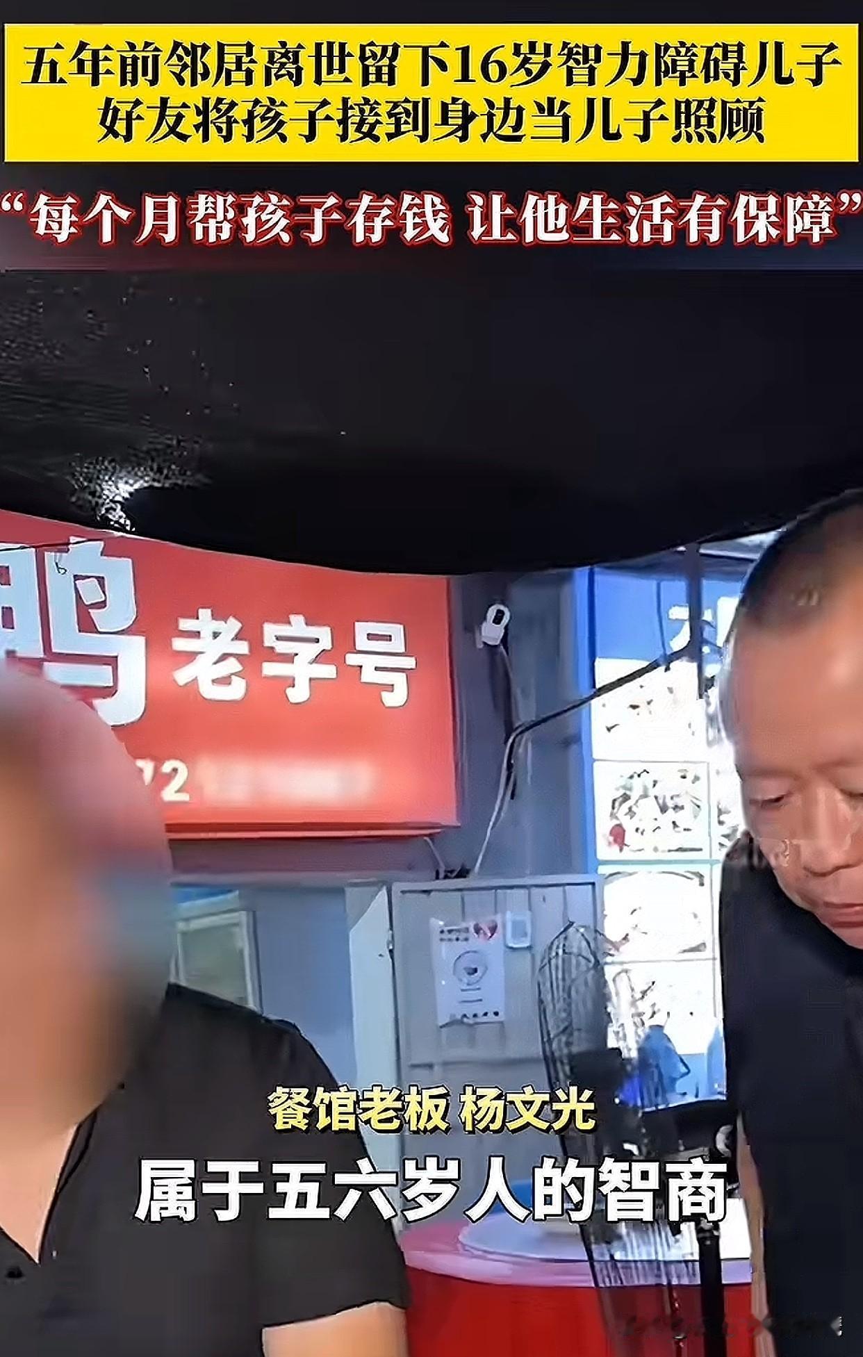 “破防了!”湖南的杨大叔真不容易,履行了对去世好友的承诺,五年如一日照顾他患有智力障碍的儿子。当年16岁却只有四五岁孩子心智的小熊,现在不仅能照顾自己,还能在餐馆帮忙,更会用温暖的笑容招呼客人。 说实话,这段情谊真的让人动容。朋友临终前把小熊托付给他,杨大叔一句“只要我有饭吃,就不会饿着他”,就这么接过了重担。从教刷牙洗脸,到手把手教做饭洗碗,夫妻俩用满满的耐心,一点点帮小熊打开了新世界。看着小熊现在熟练地端碗切菜,这份超越血缘的亲情特别打动人。 我觉得吧,在这个大家都挺忙的时代,杨大叔这份坚持特别珍贵。他让我们看到,真正的善良不是一时兴起,而是日复一日的陪伴和付出。而且他不仅给了小熊一个家,更帮他找到了自己的价值,这比单纯给口饭吃难得多了。 说到底,这样的普通人做着不普通的事,才让我们的社会更有温度。希望这份温暖能传递下去,让更多人愿意伸出手,帮身边需要帮助的人一把。