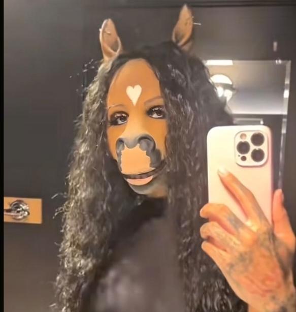国外一女士把自己整成了这样,看起来特别奇怪啊 动物的鼻子搞到自己的脸上了,额头上还弄了个心型标志