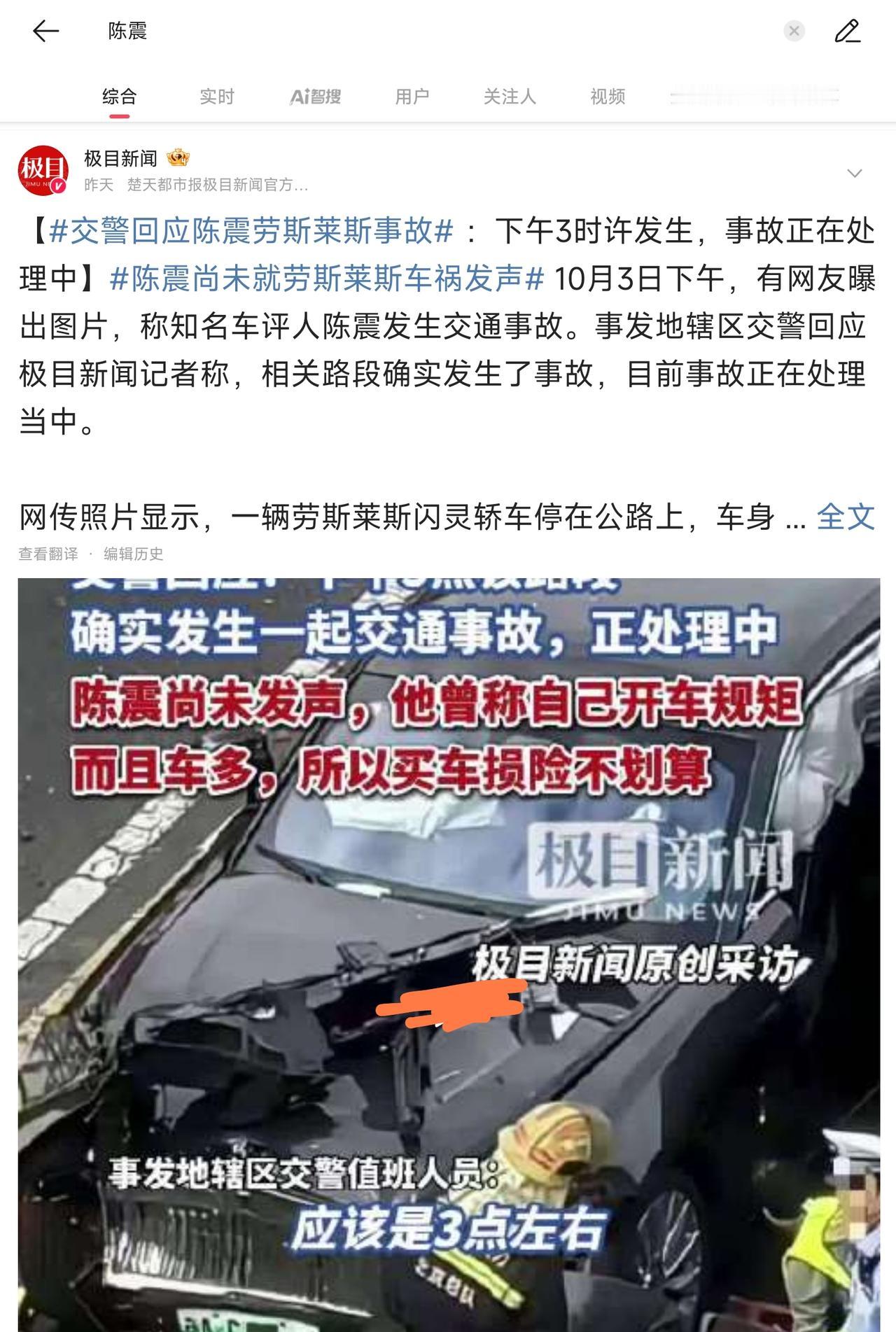 陈震拒绝回应车祸传闻,一大早正常喝咖啡吃奶酪,还亲切得跟大家问好,似乎自己劳斯莱