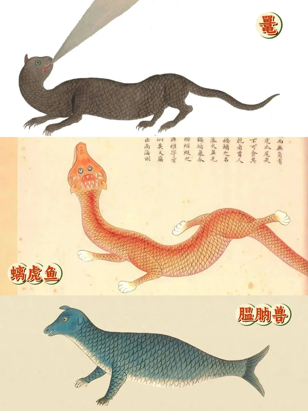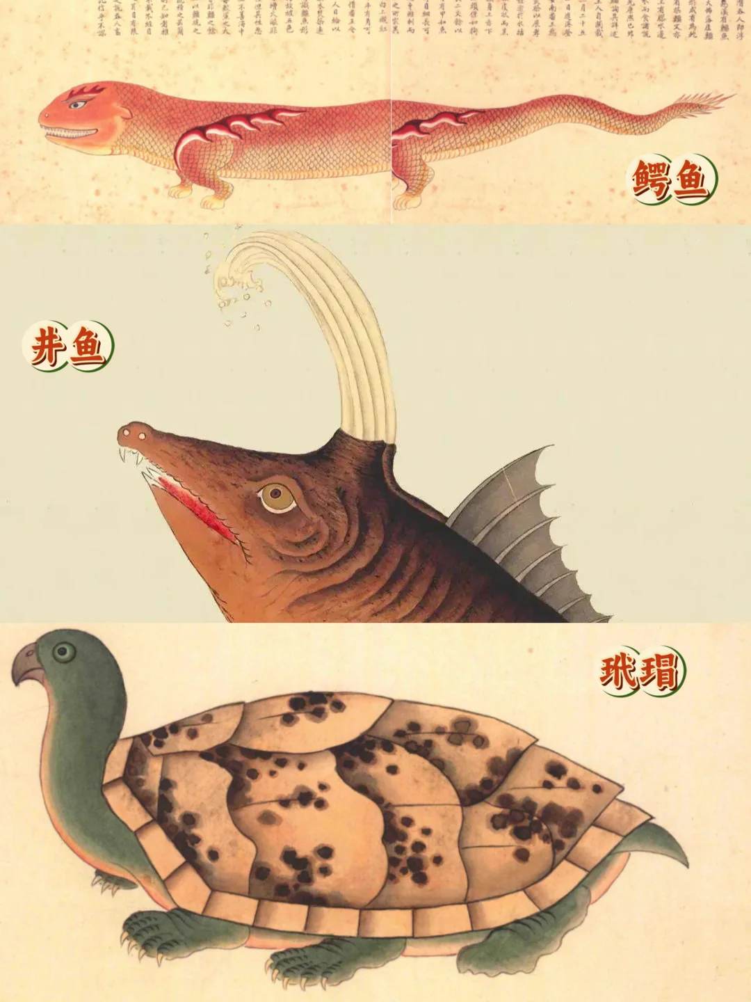 🦑许多画风清奇的生物都出自于此,虽有姓名,但多为道听途说,像鳄鱼是根据越南人口述所画,长得像科莫多巨蜥。