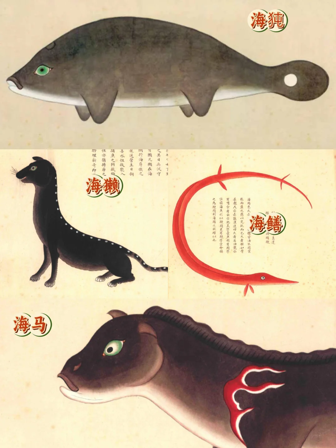 雍正四年,《海错图》被太监苏培盛寻得献入皇宫,成为了乾隆的心头好,除了不停盖章,他还号召重新修补,并收录在《石渠宝笈续编》中,后来的嘉庆、宣统皇帝也很喜爱这本书,可见在清朝海禁时,人们对于大海的幻想从未中断。