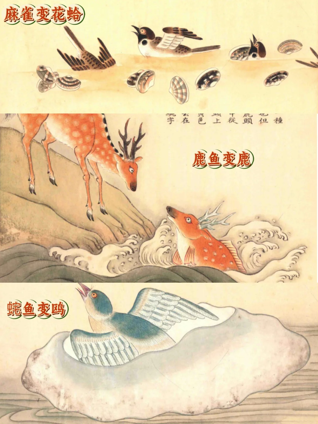 🦑这里也记录了一些“脑洞大开”,类似鲨鱼可以变成老虎,麻雀可以变成花蛤,鹿鱼可以变成鹿,䖳鱼可以变成鸥(图14)