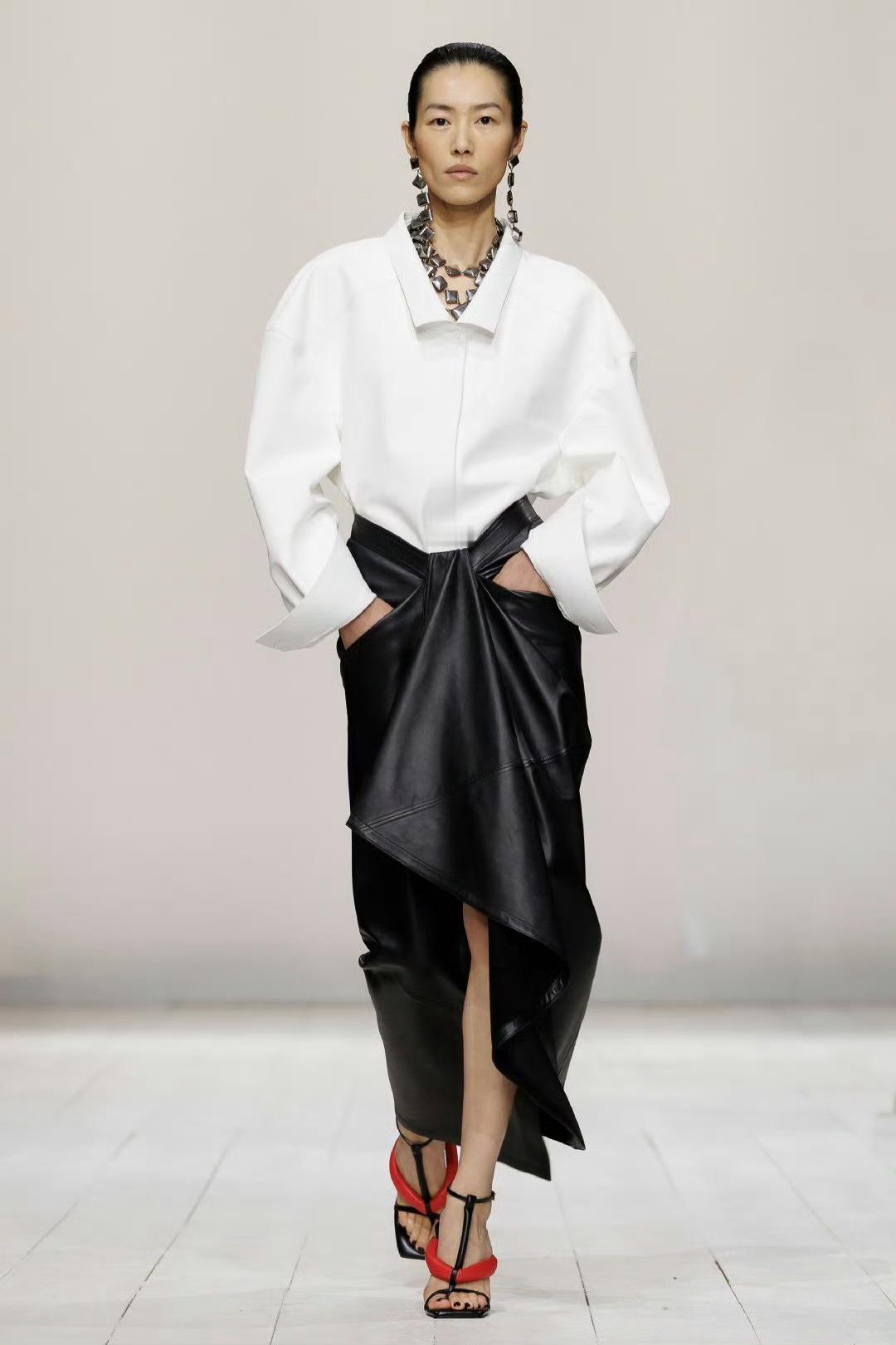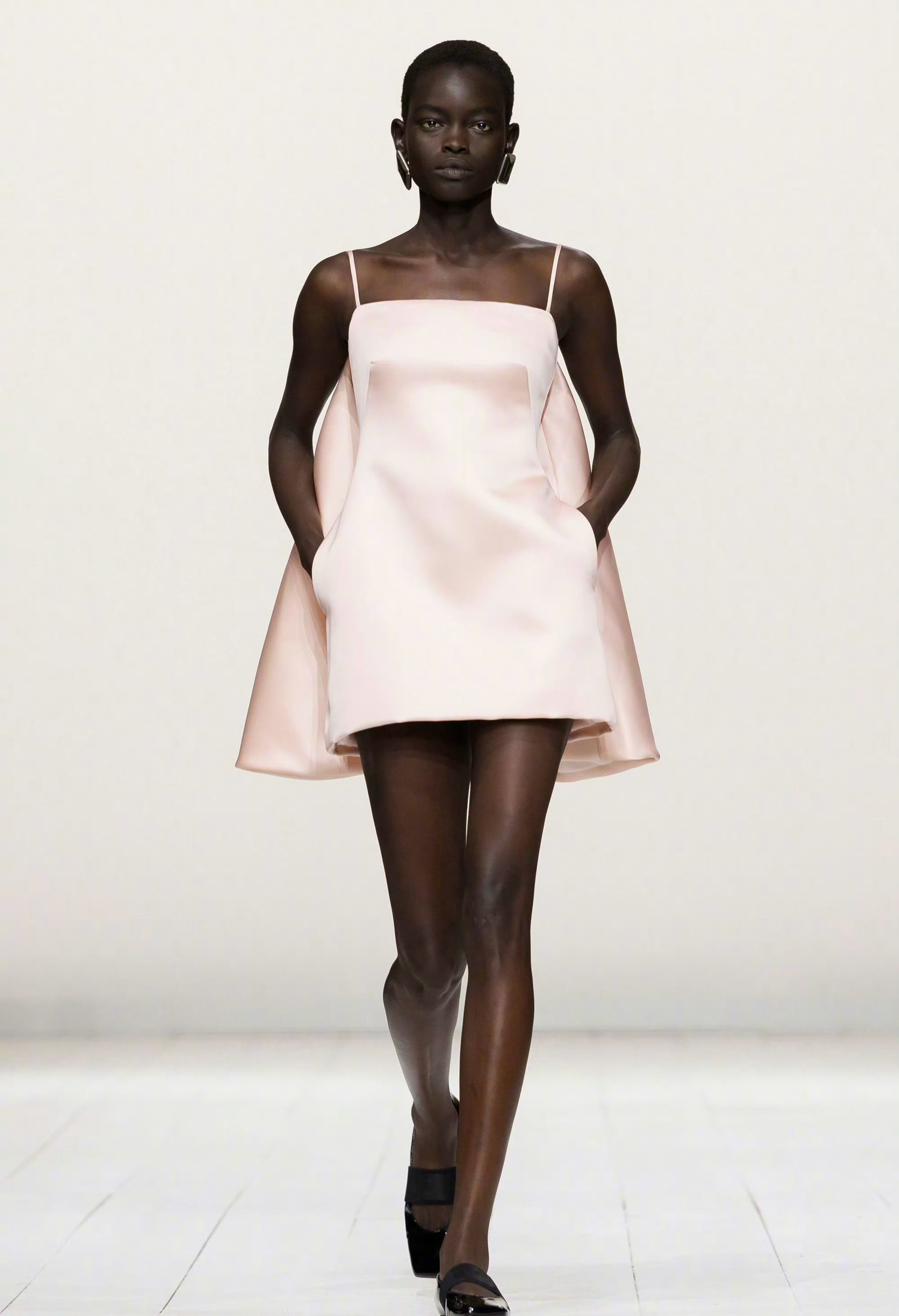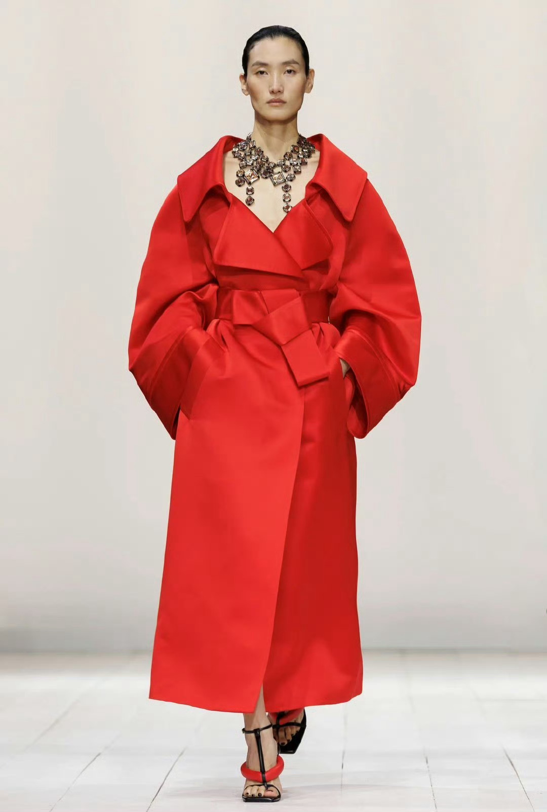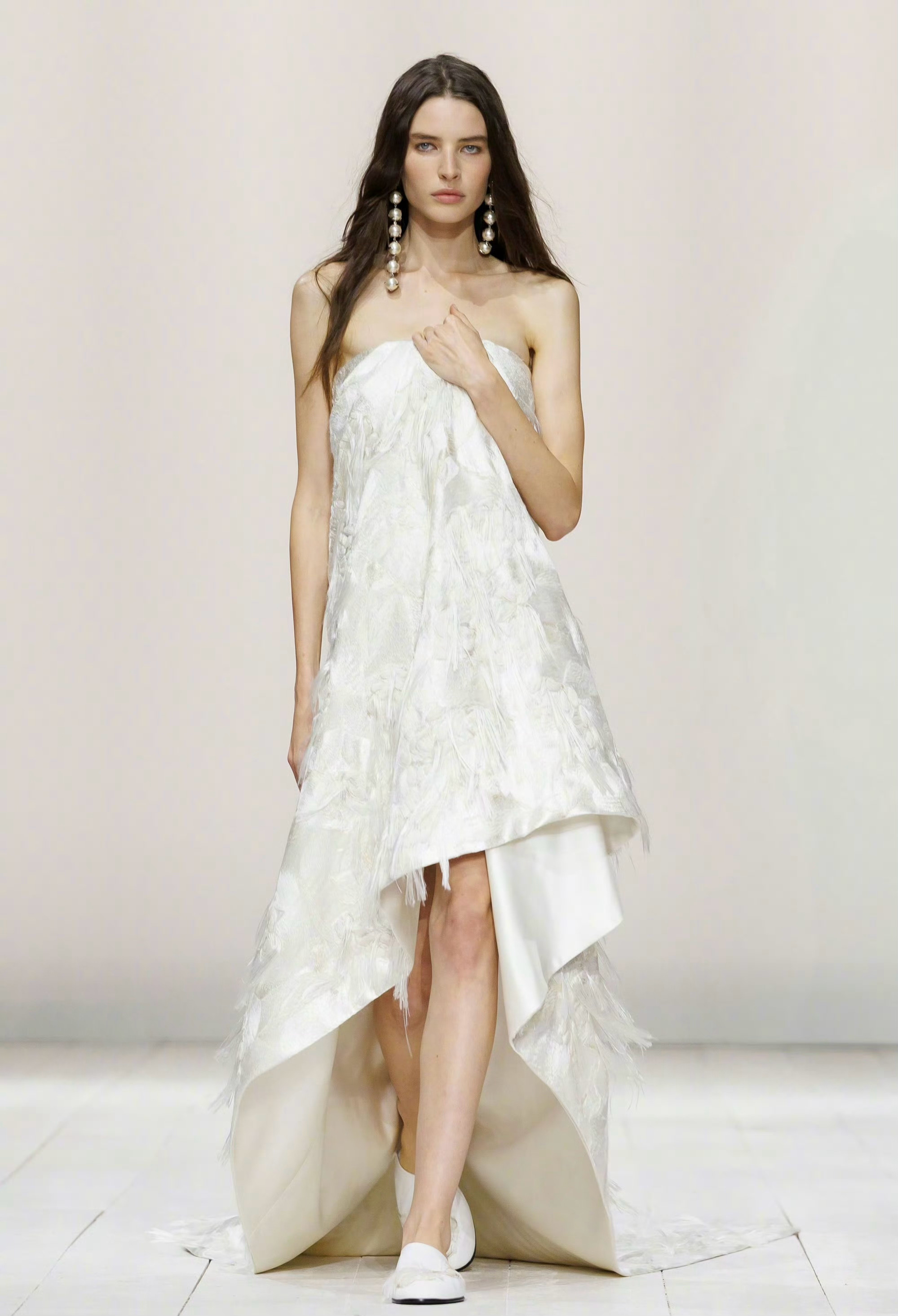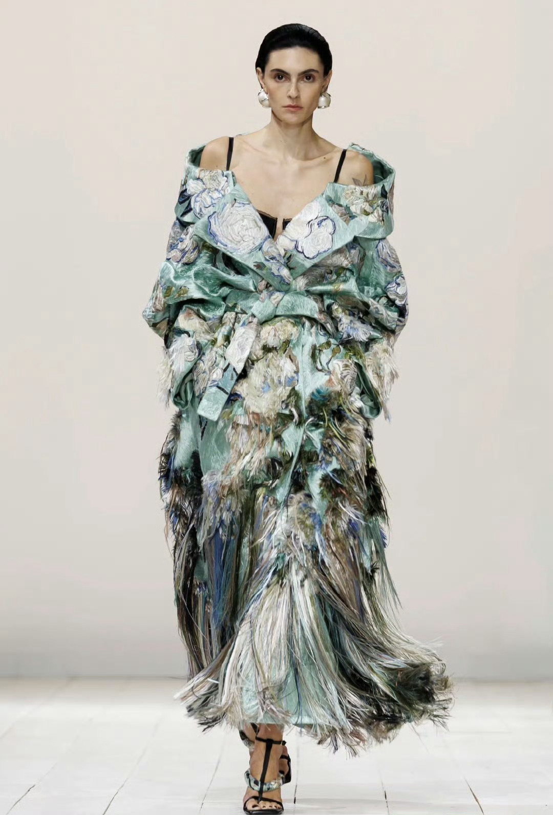 “会穿”的轻盈气息,丝线刺绣的大衣、雪纺羽化处理的蓬裙,用女性视角重塑了纪梵希的性感。