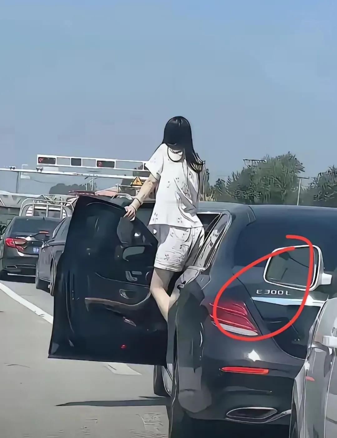 堵车路上 我看到一个穿睡衣的女生从奔驰E300L上下来透气,满身名牌,却也和