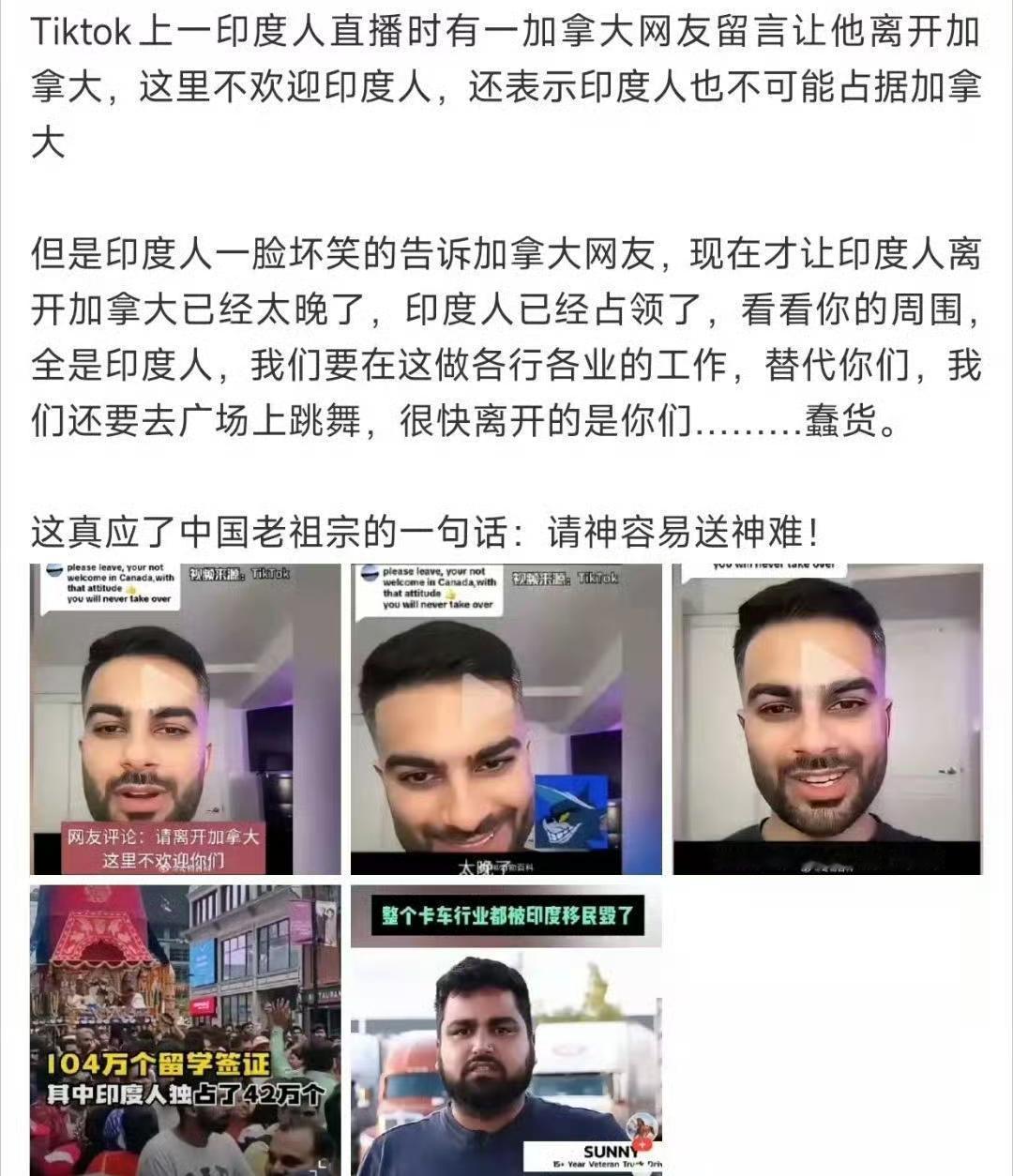请神容易送神难,现在的加拿大想要将印度人送回去,基本上是想都不用想了! 最近加拿大的印度人闹的越来越厉害,很多加拿大人纷纷吐槽:印度人到处丢垃圾,拉粑粑,过个节还直接将公园占领,彻夜喧闹,弄得周边的加拿大人连觉都睡不着。 然而,想要赶走印度人谈何容易? 没有了文明约束的密集人群体比蝗虫更可怕。人类的最终进化必须走到中华文明之中。会一些先进技术绝不代表已经自身文明。 卷别人也是一种宣战,其实我们也一直在干这件事,只是没有那么厚脸皮直接去到别人的土地上干而已 对此你怎么看?