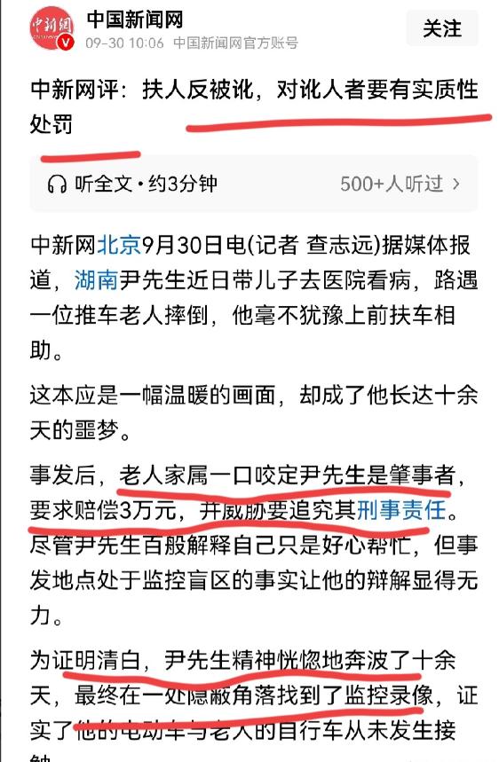 官网终于发声了!对于别人做好事还要讹人者必须要重罚! 扶人反被讹的事件终于引起了官媒的发声,尹先生好心扶起自己摔倒的老人,在家属咬定是尹先生所为,必须赔偿3万元,经过十多天的努力,尹先生找到监控视频以自证清白,而对方只轻飘飘的一句对不起就完事。 国家层面早就应该出手治理这种怪象了!这种行为完全有悖于我们社会主义精神文明,有悖中华民族的优秀传统,必须严加整治! 好心帮助别人反被讹,自己还要牺牲时间,金钱,精力去自证,如果证明不了则只能认倒霉了,而讹人者却什么惩罚也没有。 这是警方失职。 对此你怎么看?