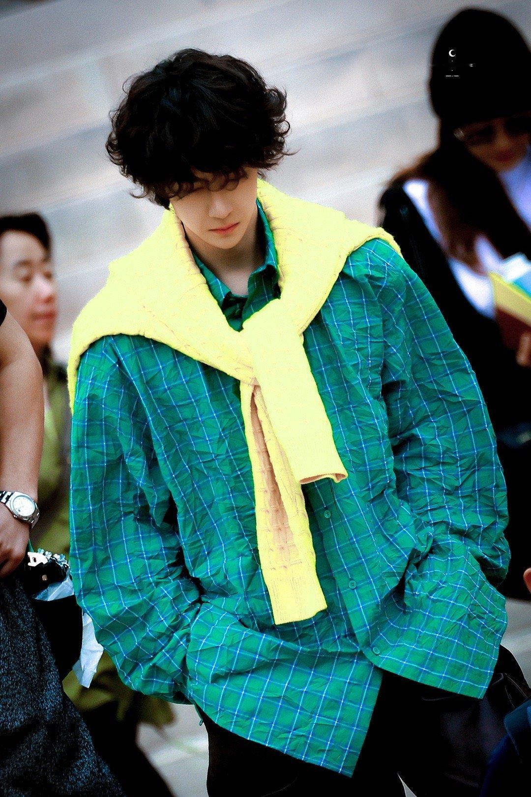 王一博罗意威黄绿撞色穿搭太绝,卷毛造型慵懒又高级。“羚羊王子”自带松弛气场,外媒追拍、C位看秀,时尚表现力直接拉满!