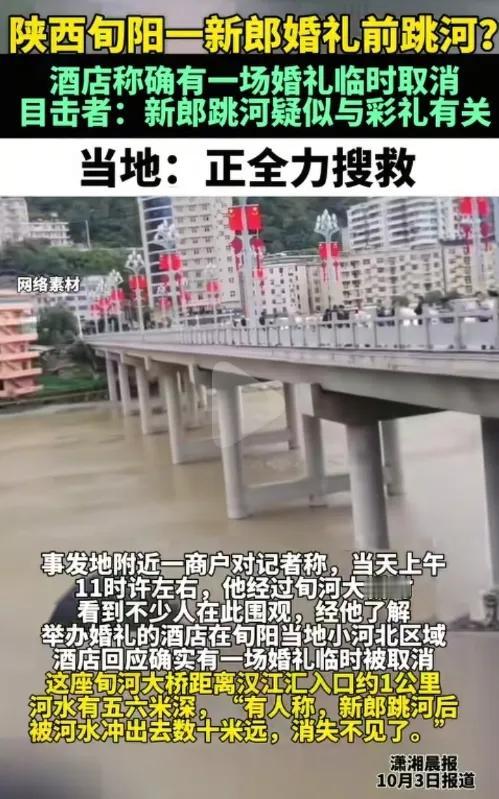 小伙因彩礼投河,这得被气成啥样啊!陕西旬阳29岁小伙周某某,10月3号从婚礼上