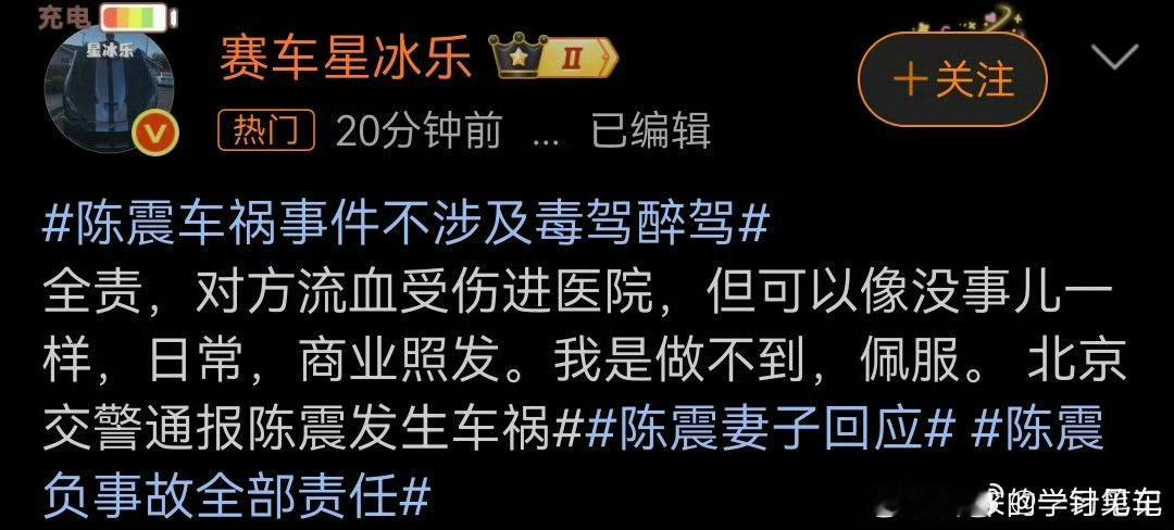 陈震车祸事件不涉及毒驾醉驾交通事故天天有,但直接在飞机上被带走的人还真不多见。星冰乐回来都装没事人一样,还质问别人?[偷笑]