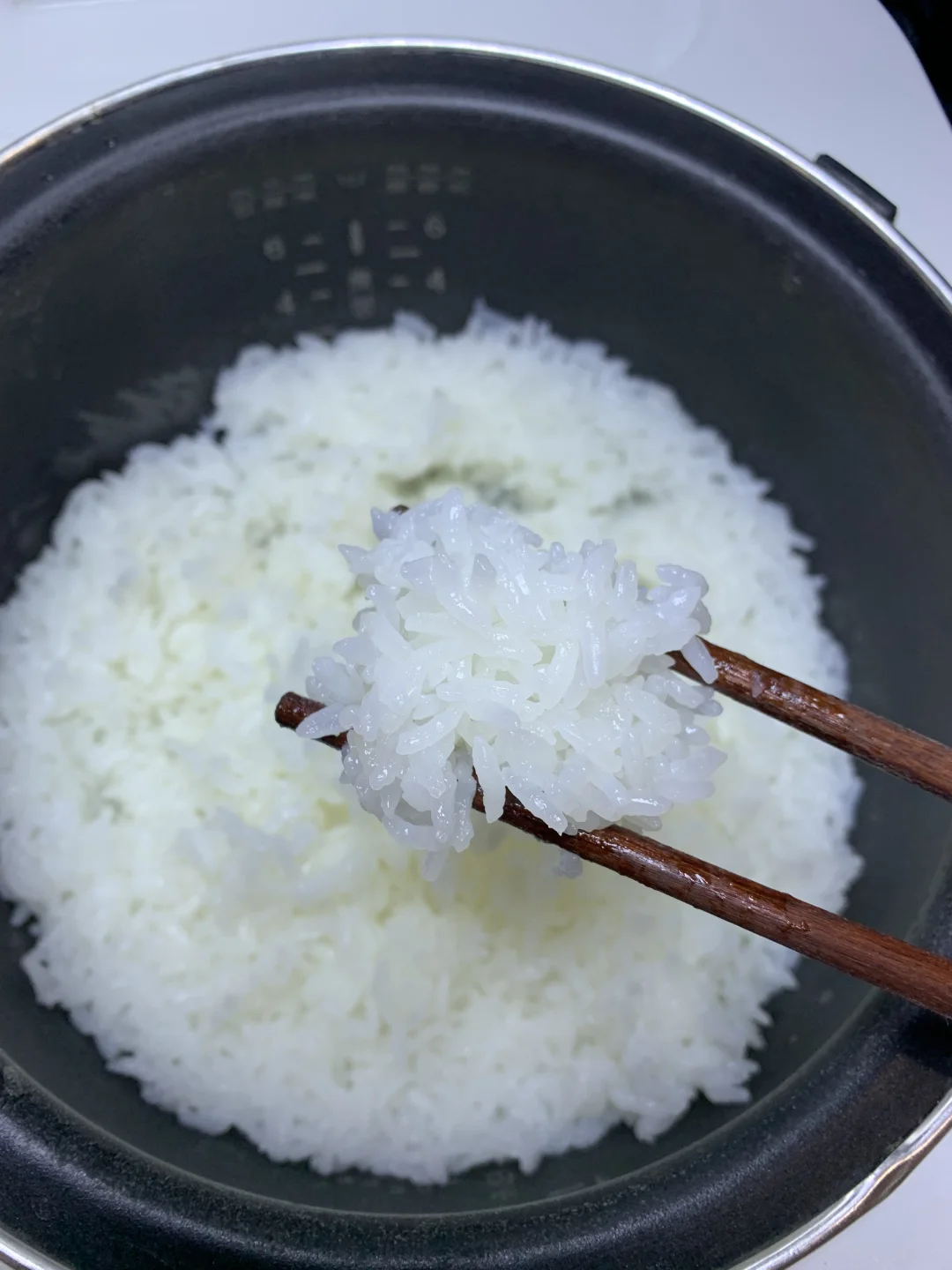 按下煮饭键就开始等,煮到倒计时最后几分钟,整个厨房都飘着暖乎乎的米香,不是外卖米饭那种单薄的味道,是扎实又温润的香气,闻着就饿。开盖更绝,米粒颗颗都鼓起来了,不是软烂成泥的那种,是带着点通透的白,用筷子一拨还会轻轻“弹”一下,糯叽叽但不粘牙。