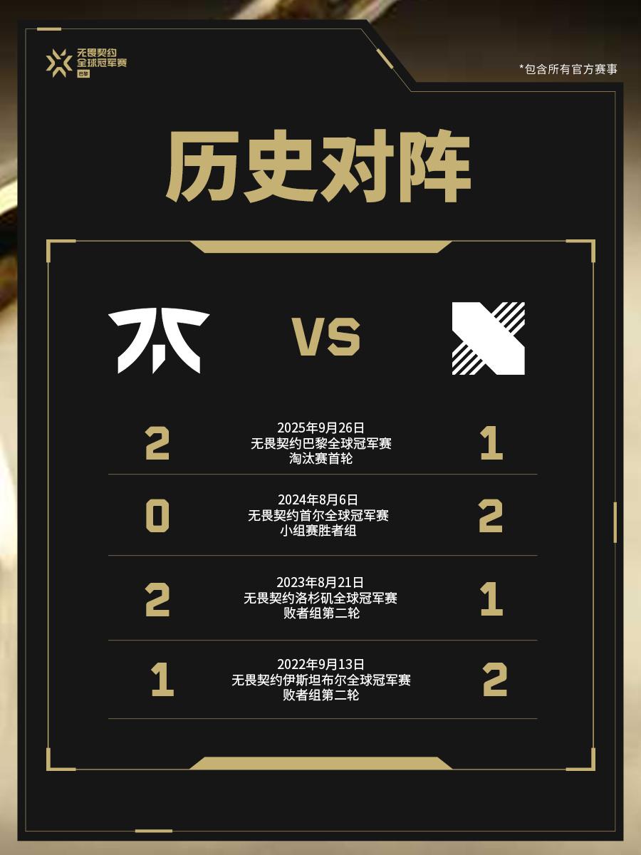 两支队伍在官方赛事中曾有过四次交手记录,最近一次就在本次巴黎全球冠军赛淘汰赛首轮。败者组决赛再战,是FNC延续优势再度获胜还是DRX成功“复仇”拿到关键胜利?
