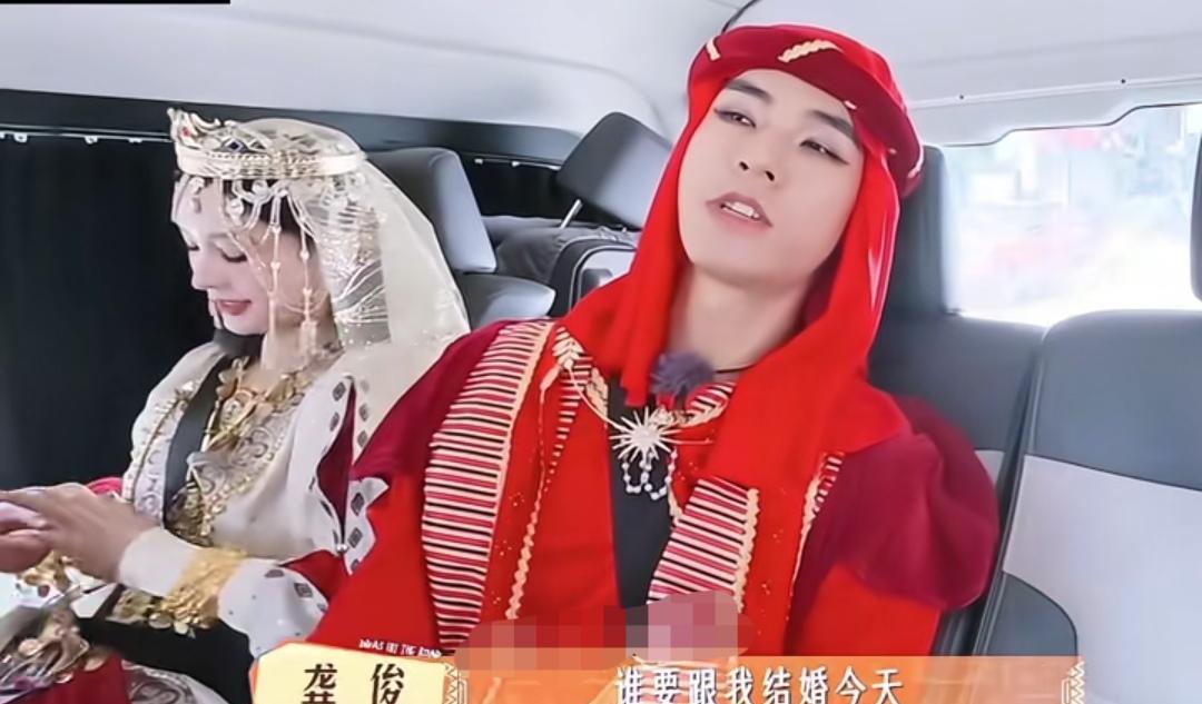 马思纯看着龚俊的装扮像个新郎官,龚俊穿着一身红确实挺像的,马思纯:“你哥特别像个新郎官”,龚俊:“谁要跟我结婚今天”,马思纯:“没人理,尴了个尬”,龚俊这问题一问,谁也不敢接啊 龚俊这会估计也挺尴尬的,隔着屏幕都感觉到他有多尴尬了 张晚意这头上戴的是个啥,每次他都好好笑啊,没人管管张晚意啊,李沁的装扮好美啊