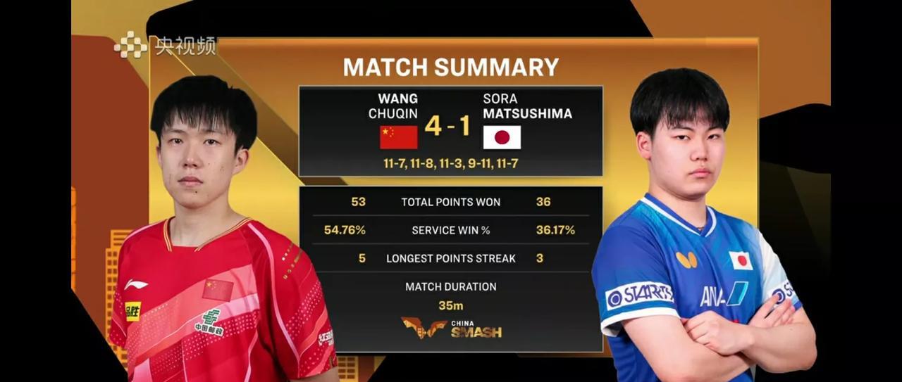 王楚钦4-1战胜松岛辉空,取得碾压式胜利,松岛的特长就是快速发动前三板,就是速度快,恰好王楚钦也是速度型的选手,松岛辉空被打的都无奈了,尤其是第三局只得了三分,不过18岁的他这次比赛也突破自己取得了大赛的好成绩。