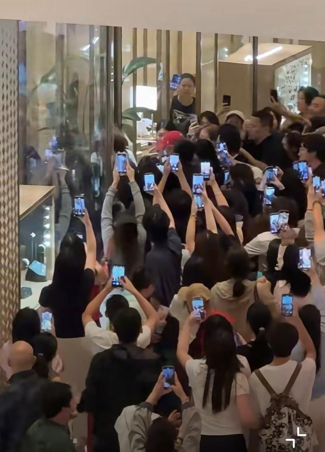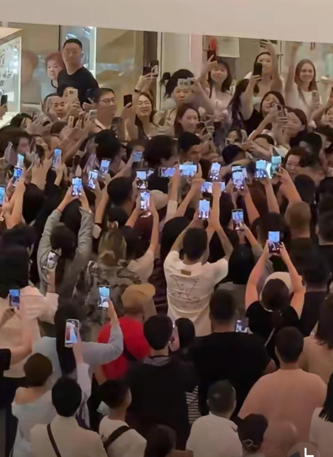 家人们快看鹿晗这段离谱视频!刚踏出一步,就被举着手机的人群围得像“铁桶阵”,最后