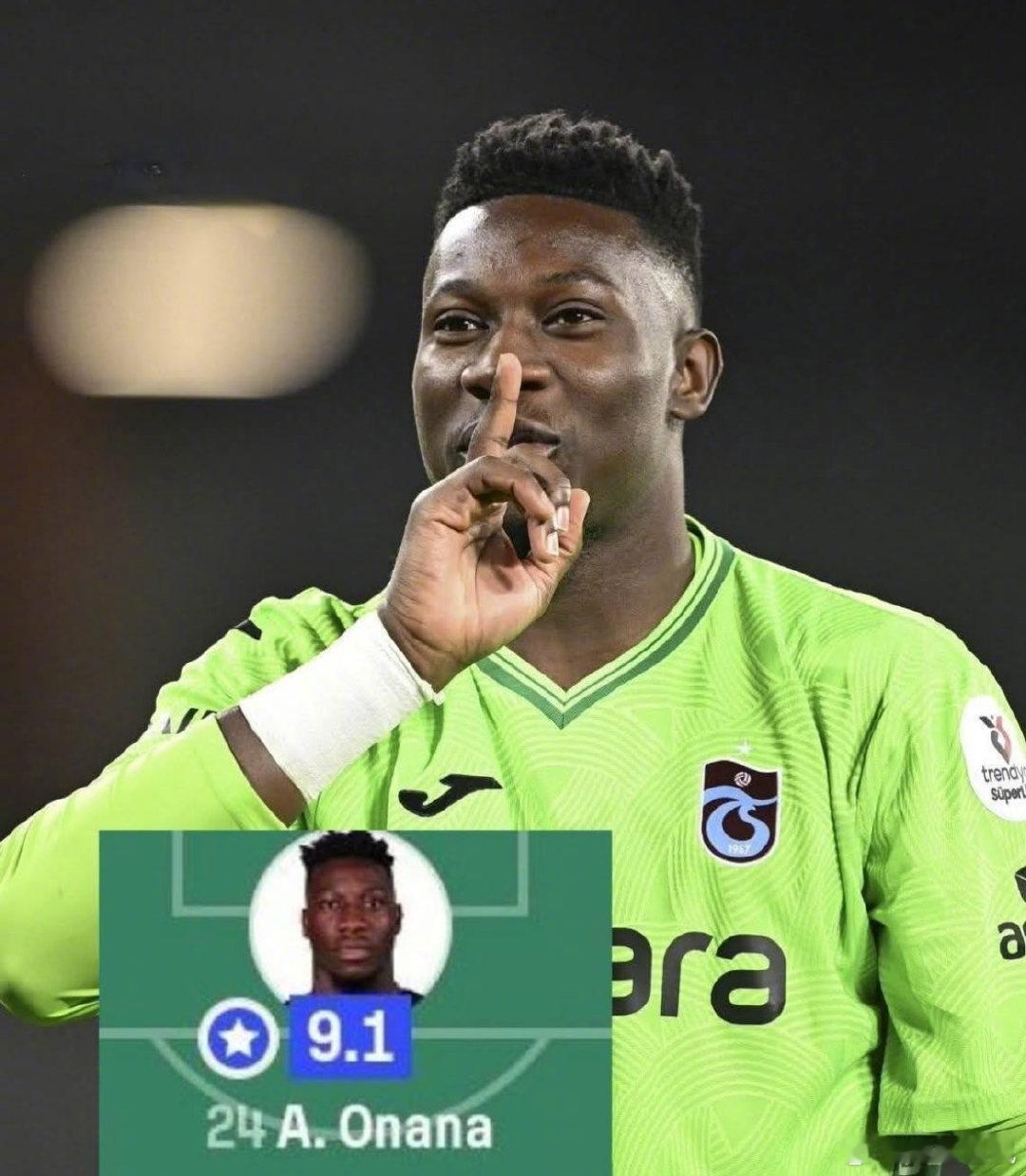 【太强了!】曼联门将奥纳纳租借至土超的特拉布宗体育,他在对开塞利体育的比赛中贡献7次扑救,帮助球队零封对手,评分达到9.1分。