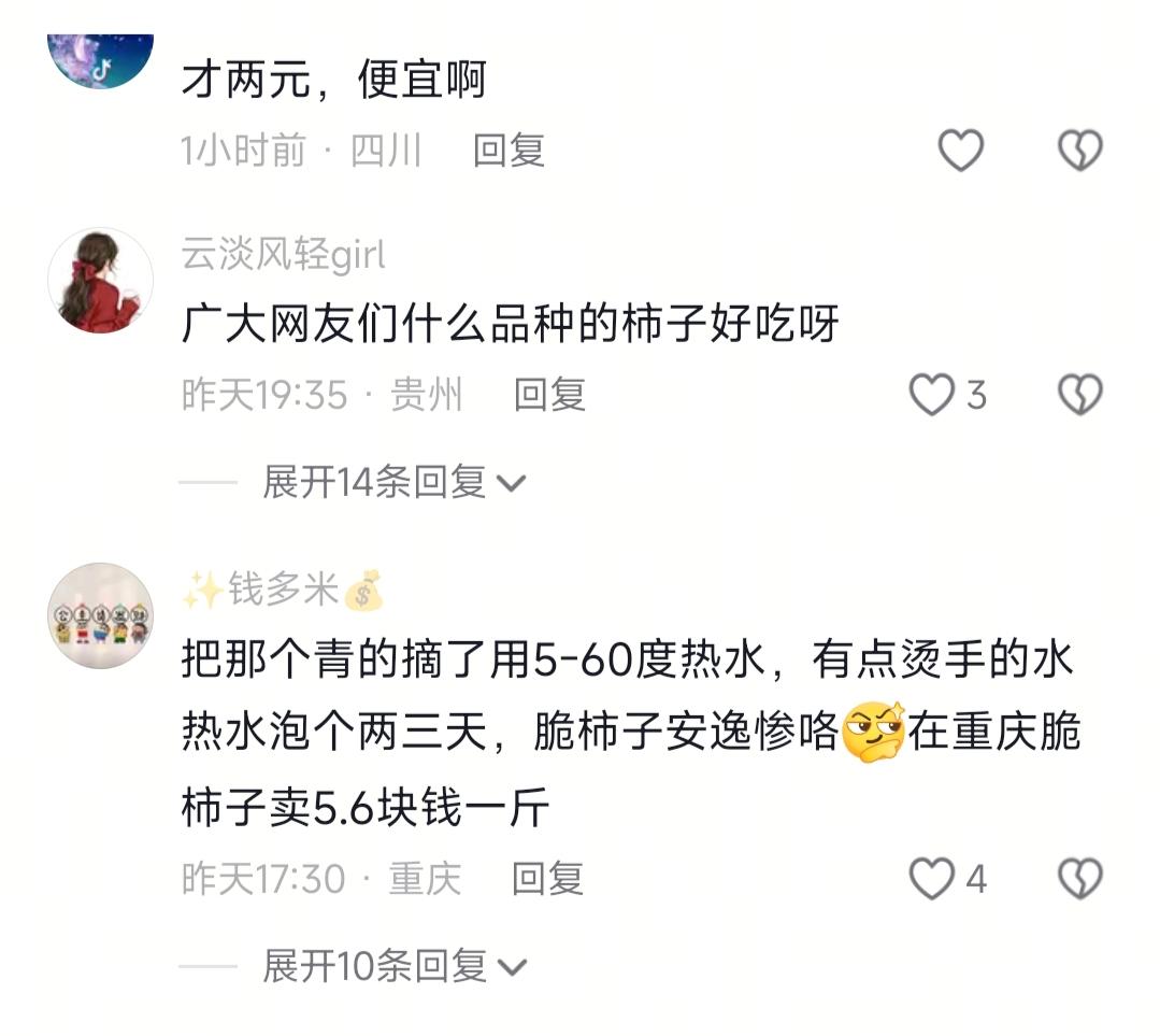 万万没想到 徐三娃为岳母建房靠的不是拍视频赚钱,不是直播带货,而是在路边卖柿子 我刷到徐三娃在路边卖杮子这事儿时,本来想感叹句“这孝婿也太实在了”,结果越看评论越懵——有人夸他大方让顾客随便尝,有人却质疑他卖的瓜果“是不是自己的”,甚至还有人说他放着赚钱的脆柿子方法不用,这反转真的假的?我和小伙伴都惊呆了,本来以为是个暖心小故事,咋越看越像“连续剧”呢? 徐三娃背箩筐去后山摘柿子那阵仗,跟我妈当年收橘子似的,不管青的红的,伸手就往筐里塞,我还纳闷呢:“青柿子摘了咋吃啊?”后来看他挑熟柿子摆路边,才有点懂了。有路人问价,他说2元一斤,结果有人砍到1.5元,说实话,换我是摊主可能都有点郁闷,毕竟柿子摘下来也费力气啊,但他居然直接点头同意了,这脾气也太好了吧? 后来又有路人问青柿子咋吃,他说“放几天就行”,我当时还想“这回答也太简单了”,结果等他卖完空筐走人,我才反应过来:他是不是就想赶紧卖完凑建房钱?不然咋不跟人多说说青柿子的吃法呢?或许是他真不知道还有别的招?总之这售卖过程,看着简单,细想还挺多疑问的。 有网友说徐三娃卖柿子时特大方,顾客想尝就随便尝,我还觉得“这老板靠谱”,结果下一条评论就看到何咚咚——人家顾客想尝,他居然自己先尝,让顾客看他的表情,我晕,这操作也太奇怪了吧?不是吧?难道是怕顾客尝多了亏本?这俩人的做法反差也太大了,我都怀疑是不是故意的。 然后有个川渝网友分享脆柿子吃法,说用50-60度有点烫手的热水泡两三天,那柿子吃着“巴适惨了”,还说重庆卖5-6元一斤。我当时就拍大腿:“哎呀妈呀,这商机不就摆在眼前吗?”说真的,我去年也买过青柿子,听老板说放几天能吃,结果放了一周还是硬得啃不动,最后全扔了,早知道这方法,也不至于浪费啊!徐三娃要是知道这个,建房钱不也凑得更快?他到底是不知道还是故意不说啊? 本来以为评论区就聊尝柿子和吃法,结果突然有人问:“徐三娃每天摘的瓜果,到底是不是他自己的?”我当时就懵了:“不是吧?这都要质疑?”这条评论没得到回应,反而越传越广,有人说“可能是找村民收的道具果”,有人说“胡扯,后山的果子哪来那么多问题”,吵来吵去也没个准信,说实话,这质疑也太没谱了吧? 结果没等争议平息,又有网友跳出来说:“上一次见这种柿子,还是看《还珠格格》的时候!”我瞬间梦回童年!不过我对剧里的柿子没印象了,可能是吧?本来挺严肃的归属争议,突然被怀旧情绪带偏,也是挺意外的。我朋友之前跟我说:“人做事就像种庄稼,你真心付出还是装样子,时间长了总能看出来”,现在看这事儿,好像还真是这么个理。 总之,我想说的是徐三娃卖的杮子,好像挺好吃的。如果可以的话,能寄给我一斤吧,你想吃吗?徐三娃