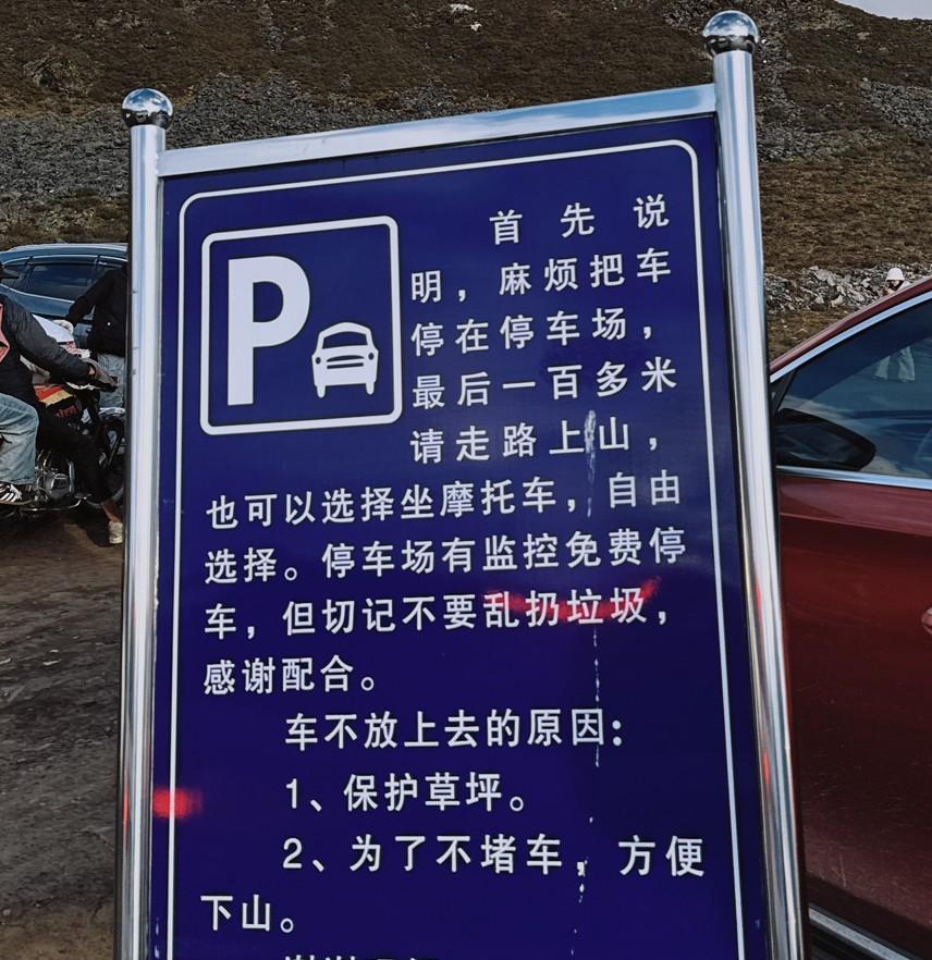 这样的情况说明毫无文采可言,但却把该说的事情都说清楚了,而且看起来还不让人生厌。在川西甲根坝木雅雅口景区有一块停车牌特别有意思,本来最后百十来米就可以到观景平台,而且本来也把路修上去了,车是可以开上去的。但管理方翩翩就不让你把车开上去,然后旁边一堆摩托车要价20元来回百十来米。一般游客都会觉得这是景区在巧立名目促二销。但就是因为这块语气很土的牌子把情况说得清清楚楚,一下子就让原本的些许不满消除得干干净净。如果一本正经的按照官方语言来表达相同的意思,估计效果不会这么好! #万能生活指南#