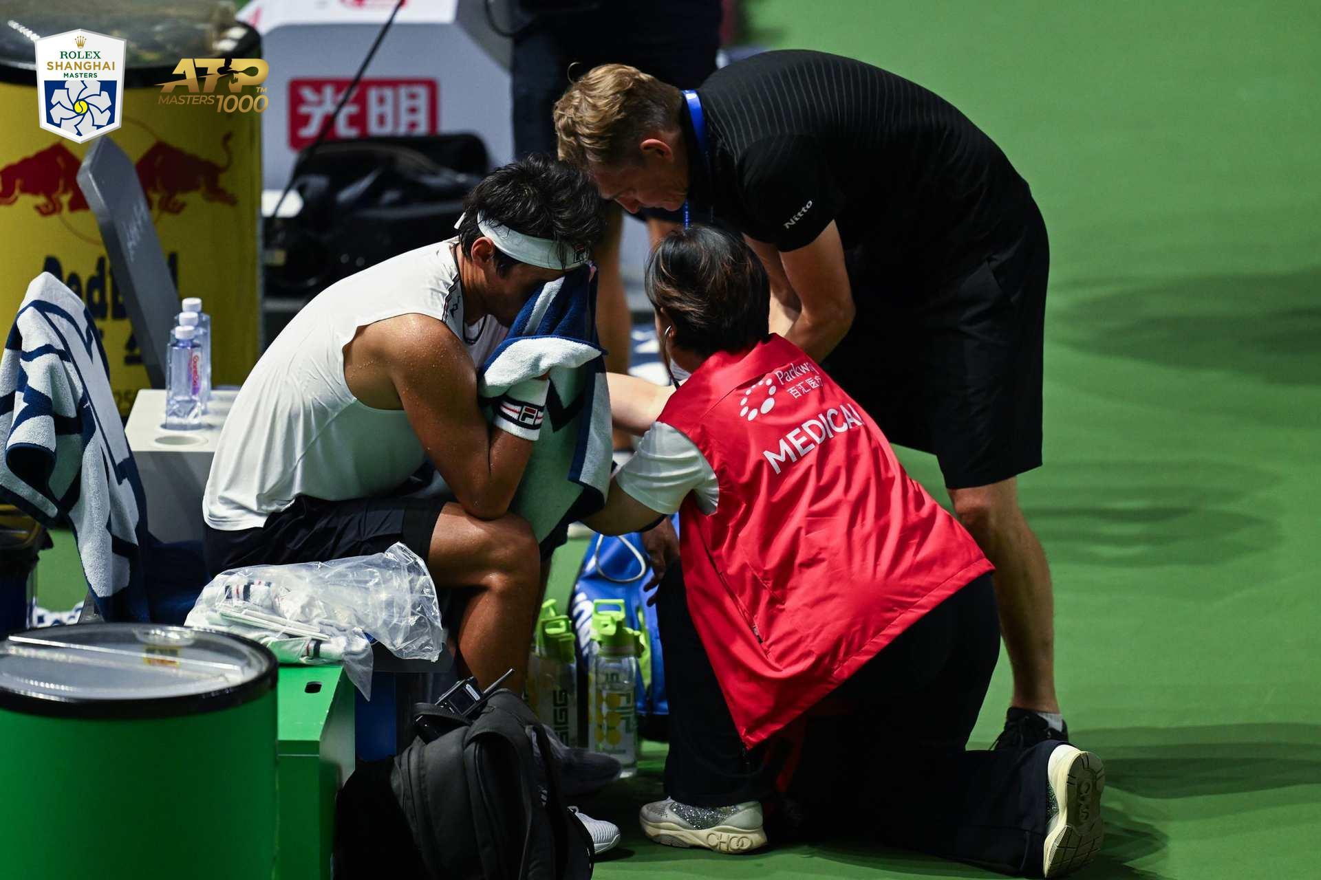 小布赛后说最近这一个月比赛有些过于密集(单双打一直双线作战),导致身体出现了不适;一部分是因为今天上海湿热的天气,另外一个原因是昨晚双打打到最后已经出现了一些不舒服。