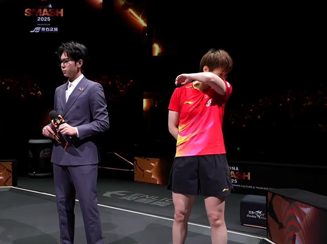 鳗鱼采访时,为什么哭了? 我看到她眼里有泪花。 记者问: 决赛又遇到莎莎,你该如何准备呢? 鳗鱼说: 我和莎莎非常熟悉, 不想多了, 还是一分一分的打吧。 今年下半年, 多哈世乒赛, 欧洲大满贯, 澳门冠军赛, 都是莎莎和鳗鱼的决赛, 每次鳗鱼都是差一点就赢了, 可能想到这里,哭了吧。