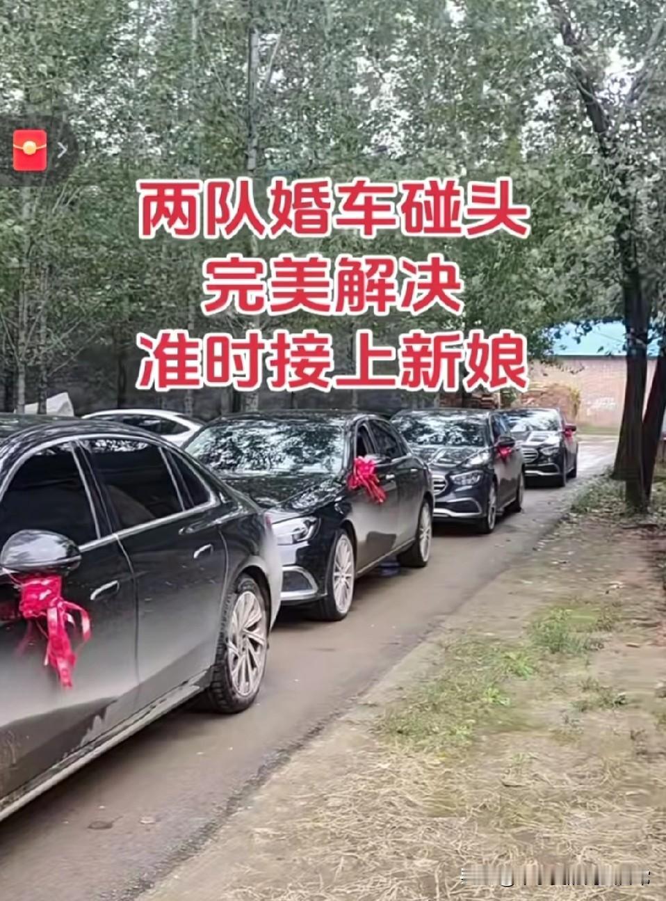 两婚车硬刚大结局!完美解决! 菏泽涵洞下的婚车对峙大戏,终于以“树枝开路”神反转落幕!前有两队婚车死磕面子绝不倒车,后有伴郎扒开树枝,奔驰车挂着树枝极限通过,硬是把僵局玩成了“乡村版赛车闯关”。 从硬刚两天的剑拔弩张,到树枝开道的魔幻操作,这波操作把围观群众看傻了眼。有人喊绝:“这脑洞,婚礼策划都得拜师!” 也有人吐槽:“为了不输,树枝都成了排面武器?” 可话说回来,婚车争的是面子,可这树枝开路的“赢法”,到底是机智还是离谱?您觉得,这波操作是绝绝子还是瞎折腾?